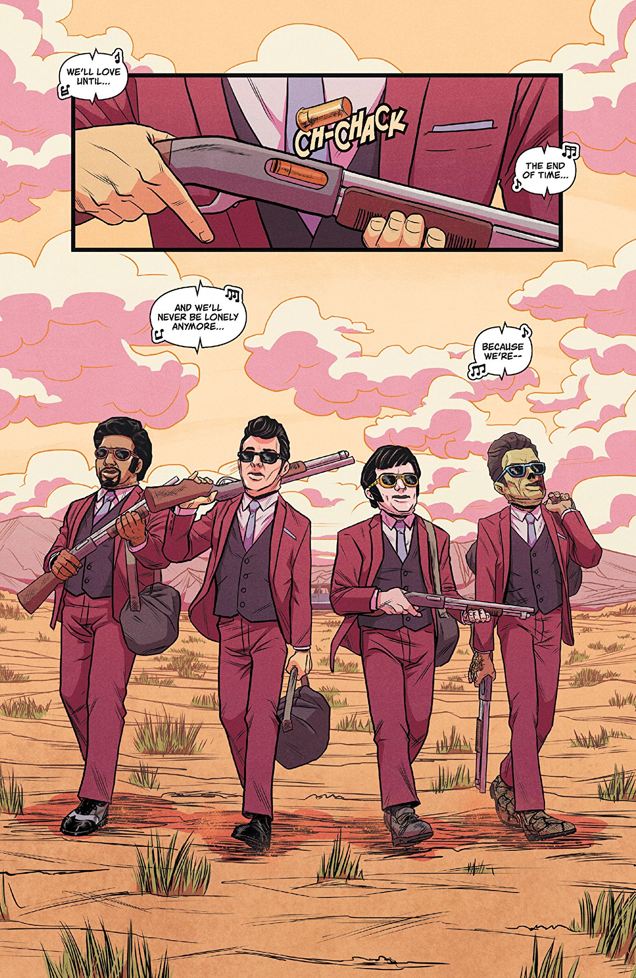 Reading this first issue, my mind immediately went to True Romance, Reservoir Dogs, the opening of Kill Bill and, for some reason, Raising Arizona. This is a very Tarantino kind of story, but it’s got a lighter, more humorous tone to it that works well. This first issue has just the right balance of exposition and progression to keep it moving in the right direction. I think it’s going to be a series with a fair amount of flashbacks in it but the team seems to have the pace just right.