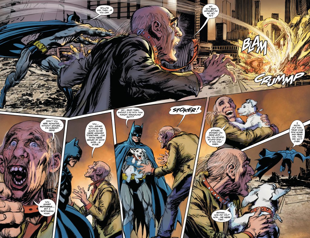Throughout the course of this first issue, a couple of things started to become apparent to me. Firstly, and with the exception of some occasional moments of roughness and a slightly unfinished quality to certain panels, Adams’ artwork doesn’t look to have lost too many steps since its iconic heyday. The action flows smoothly, Batman is every bit the lithe, heroic detective that a lot of us grew up with, and the whole thing has a pleasingly ‘old school’ aesthetic without ever feeling too dated.