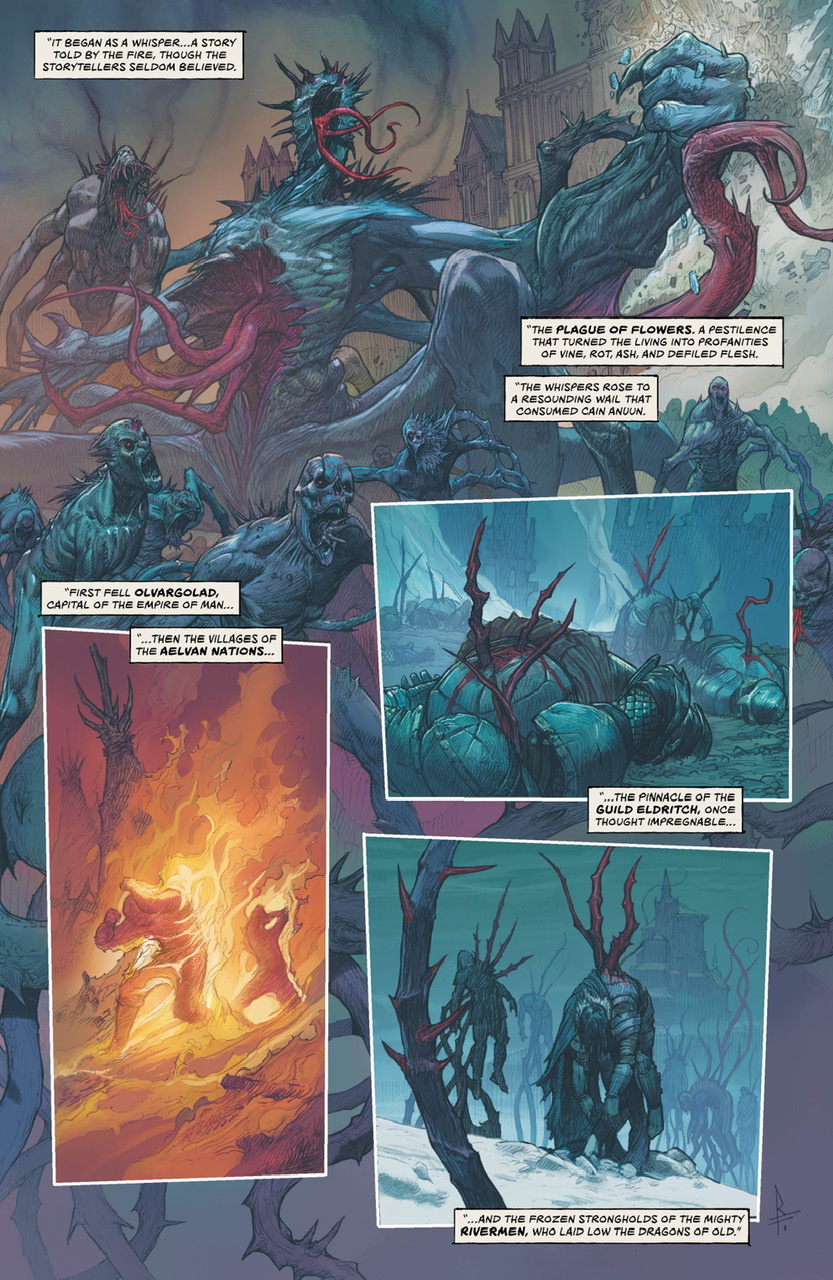 It’s a surprisingly earnest affair, playing the well-worn swords and sorcery tropes as straight-faced as possible throughout the course of this first issue. That’s not necessarily a bad thing in itself, but given the track record of Phillip Kennedy Johnson as a writer (Warlords of Appalachia being a personal favourite of mine), I was expecting something… more. Don’t get me wrong, the execution here is commendable, and there’s more than enough world building in this first issue to give the story a rich backdrop to play out in front of, but aside from the inherent visual appeal of the horrific ‘Plague of Flowers’, there wasn’t much about this first issue that really grabbed me in any significant way.