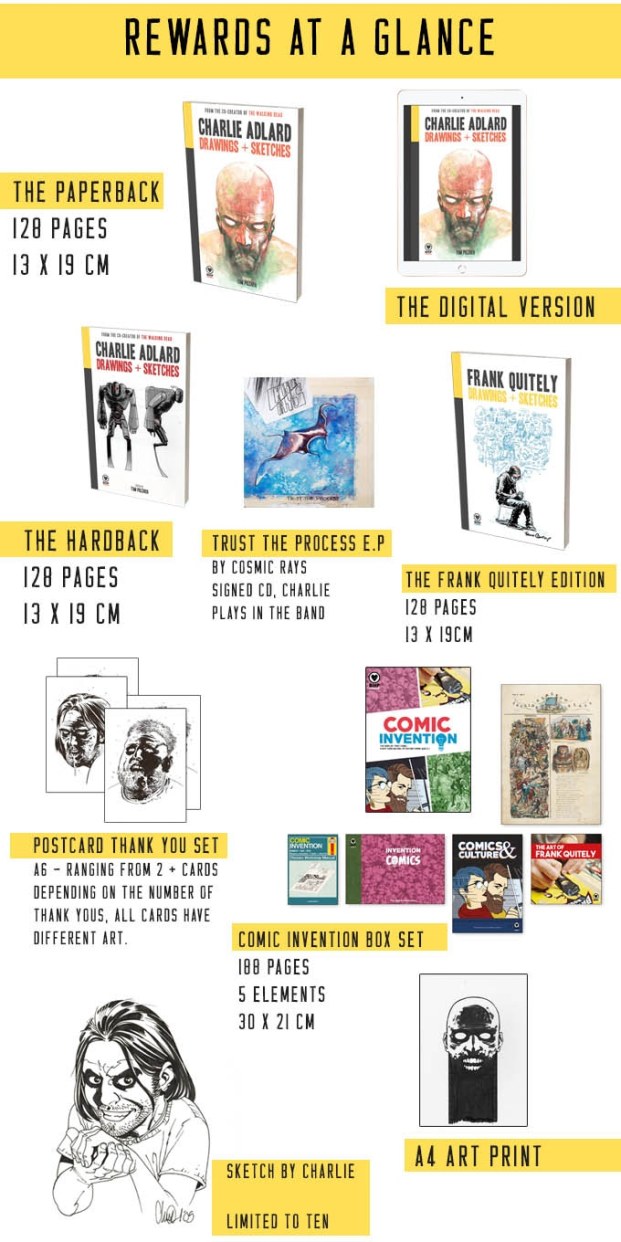 In addition to having the chance to nab the paper and/or hardback copy of the book at a discounted price, backers can also get their hands on digital copies, gorgeous artwork prints, a signed E.P. from Charlie’s band, Cosmic Rays – and even a personalised commission from the man himself!
