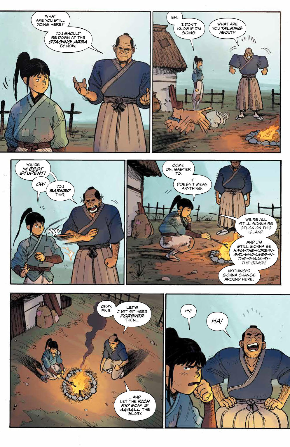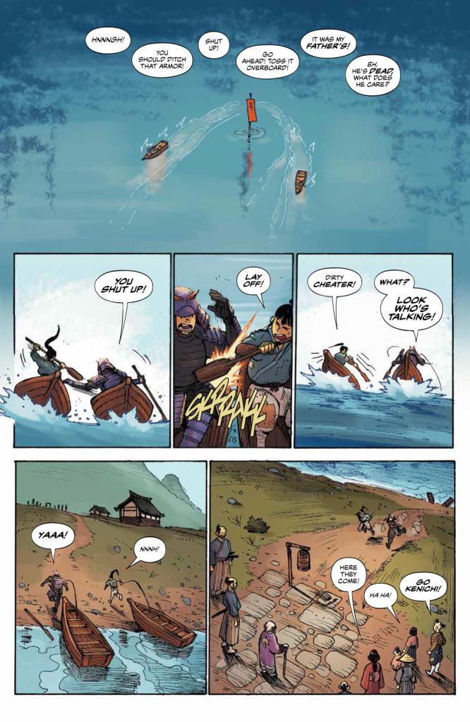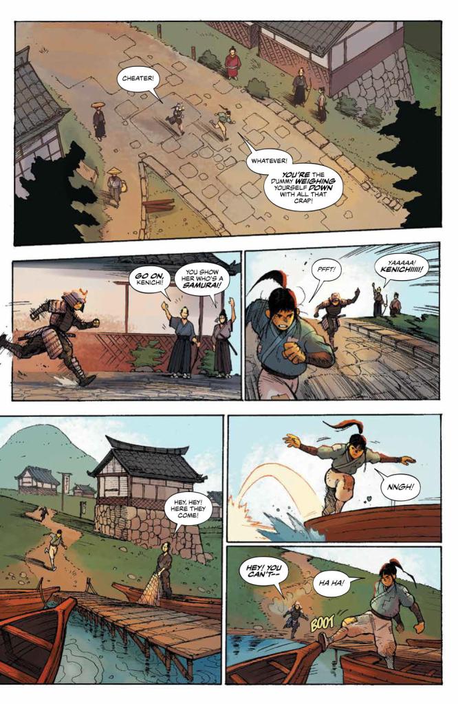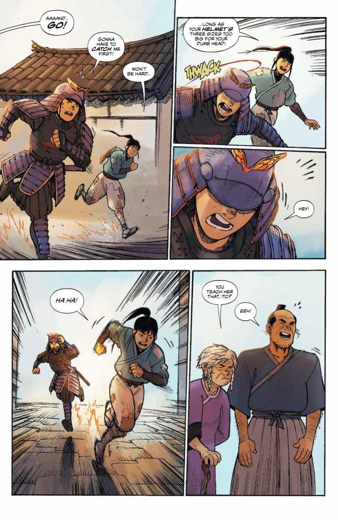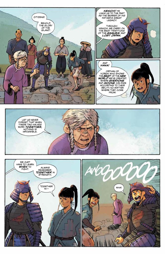 Ronin Island, from Greg Pak and Giannis Milonogiannis, is set in a fictional version of 19th century Japan, Korea and China in the wake of a catastrophic event called the “Great Wind”. In the aftermath, a small group of survivors from each nation have found refuge and united on a peaceful island, trying to gradually rebuild their lives. However, when the Shogun’s soldiers show up demanding fealty, with a marauding pack of mutated monsters hot on their heels, two youngsters will be forced to put their differences aside in order to save friend, family and enemy alike.