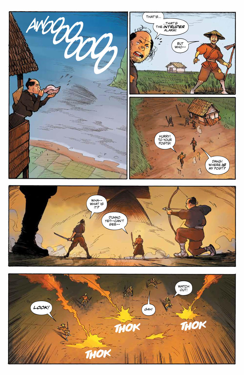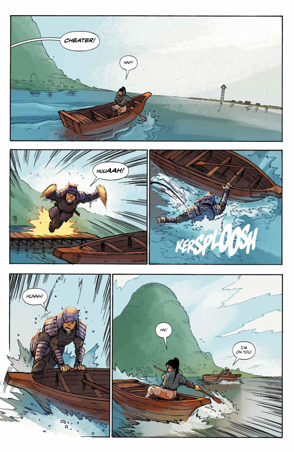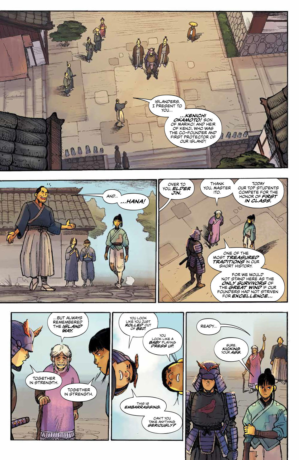 Ronin Island, from Greg Pak and Giannis Milonogiannis, is set in a fictional version of 19th century Japan, Korea and China in the wake of a catastrophic event called the “Great Wind”. In the aftermath, a small group of survivors from each nation have found refuge and united on a peaceful island, trying to gradually rebuild their lives. However, when the Shogun’s soldiers show up demanding fealty, with a marauding pack of mutated monsters hot on their heels, two youngsters will be forced to put their differences aside in order to save friend, family and enemy alike.