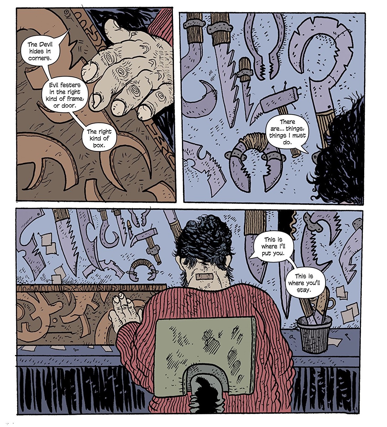 The artwork for this book is provided by Iain Laurie, who has just recently provided the artwork for House of Sweets (one of my top five titles of 2019). Laurie has a gift, and I think is criminally underappreciated in his field. In a comic world where rippling muscles, chiselled jaws and perky breasts are de rigueur, Laurie is one of only a few artists out there today that can do truly grotesque on an epic scale. There are no beautiful characters in this story. Everyone is a grotesque caricature with every scar, worry, heartbreak and mile on the road, visible in their eyes. These are characters that don’t attempt to hide their fetishes and deviancy and the horrors they’re capable of behind a veneer of respectability and glamour. They are characters that you would actively cross the road to avoid, probably at speed and preferably in a moving vehicle.