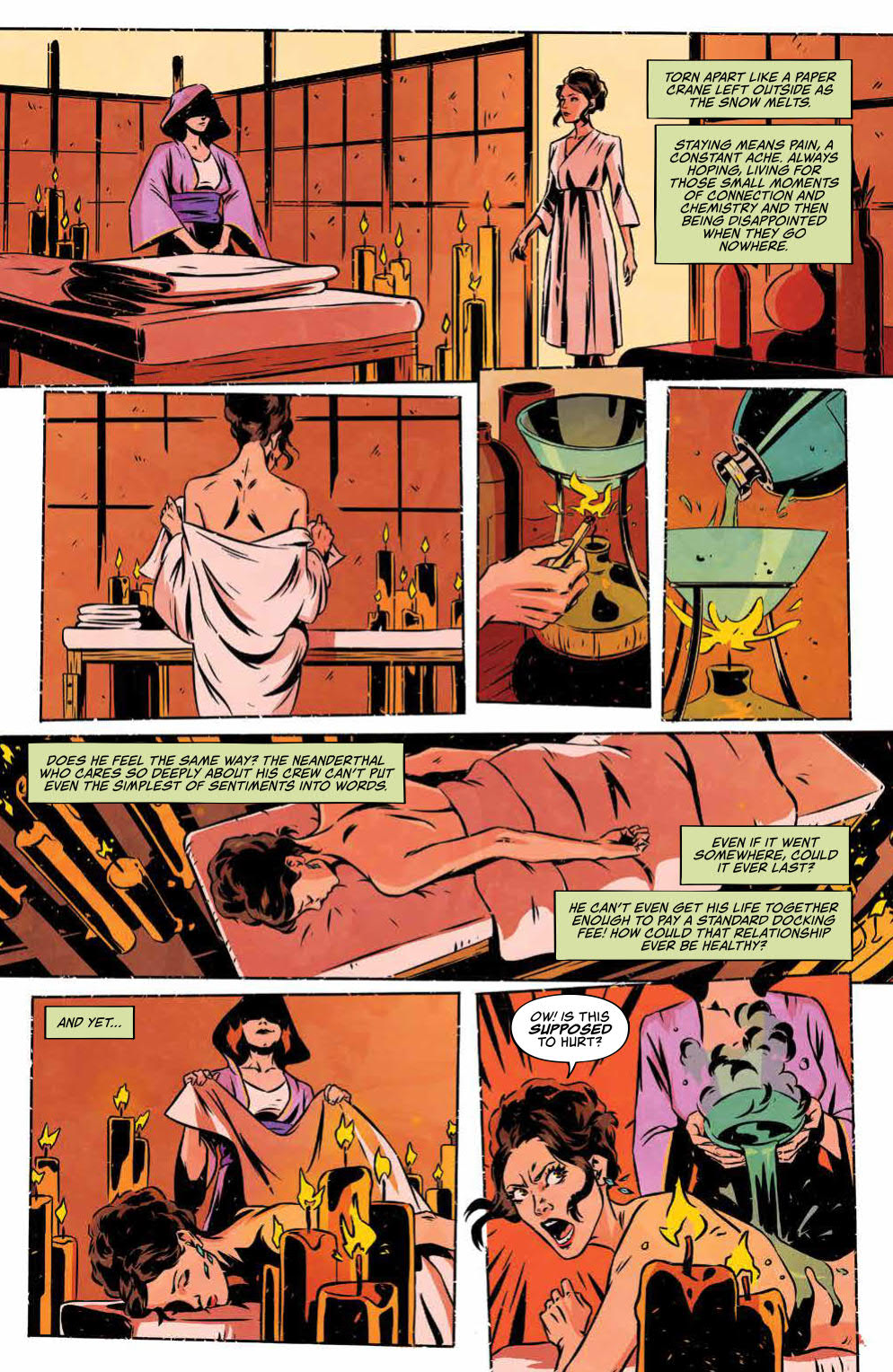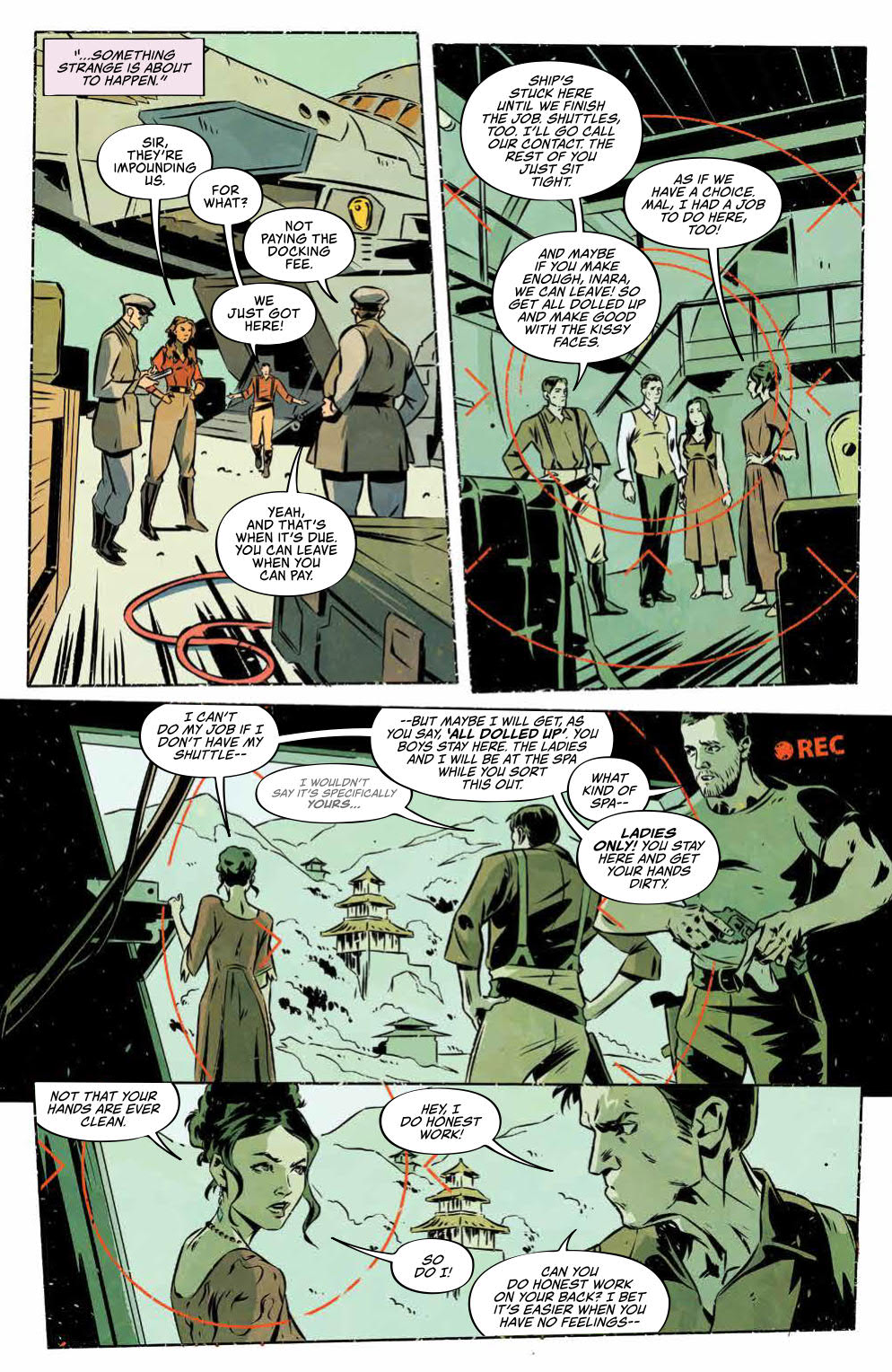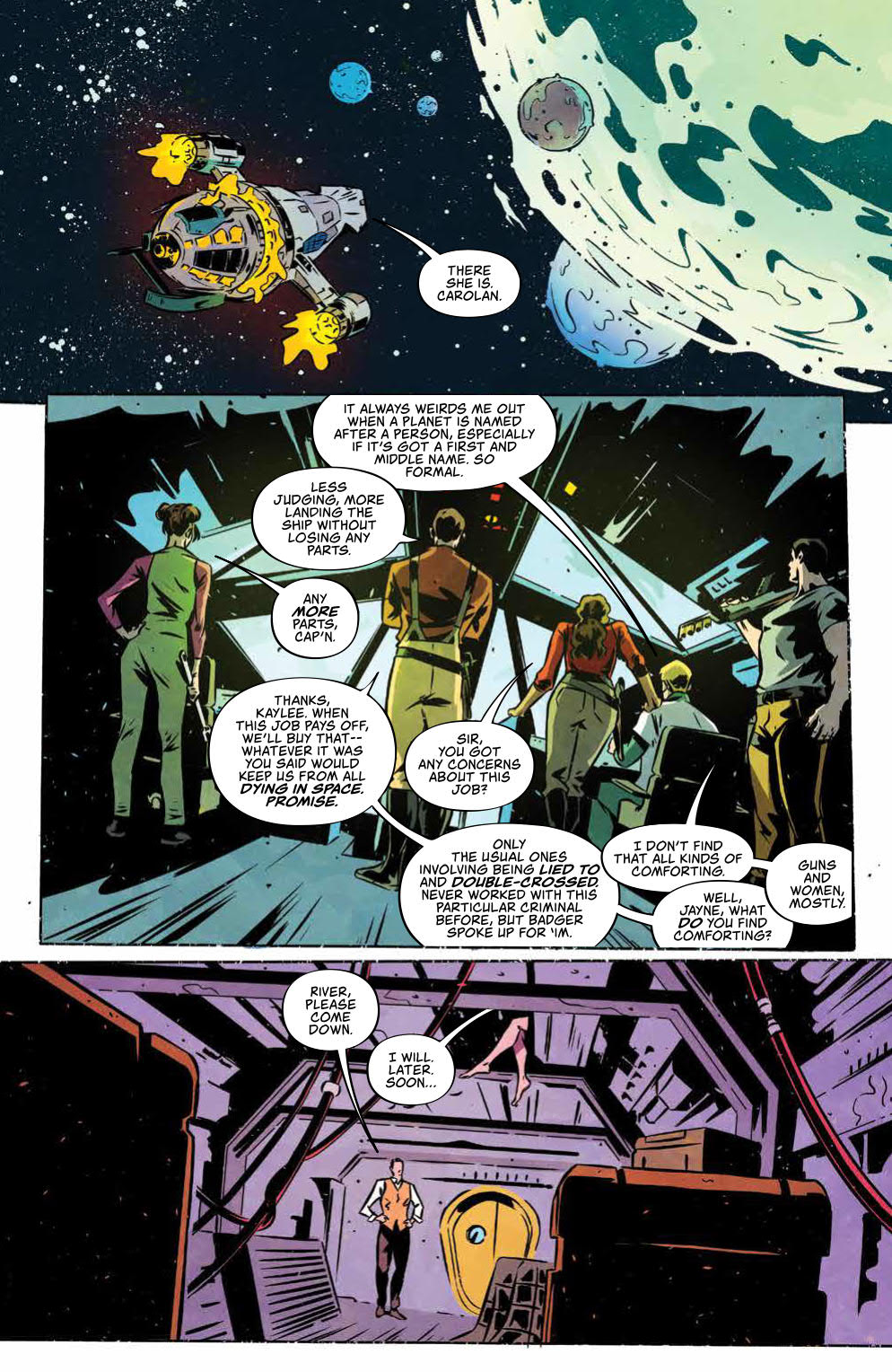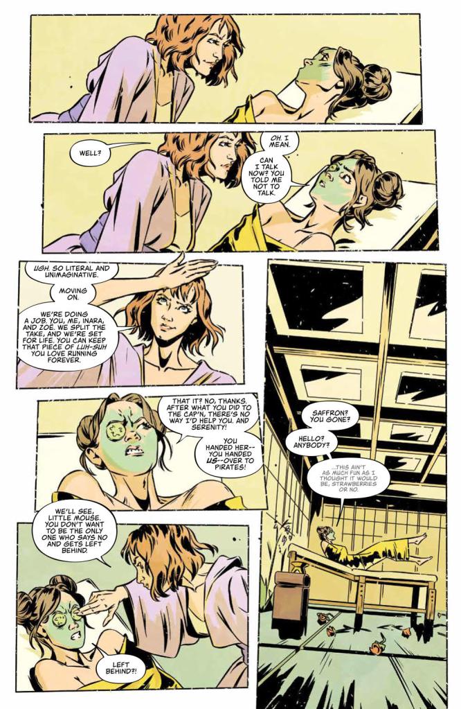The story is great fun, with popular series antagonist Saffron forcibly “recruiting” Zoe, Kaylee, Inara and River into a diamond heist by threatening to blow up Serenity and its remaining inhabitants. Set between the events of the TV series and the movie, it slots easily into the existing continuity without requiring any prior knowledge and without impacting any future storylines. As such, runs the risk of feel inconsequential in the grand scheme of things, but there’s still a lot of great stuff going on here, particularly for fans who want to see the spotlight shine a little brighter on the female members of the Serenity crew.