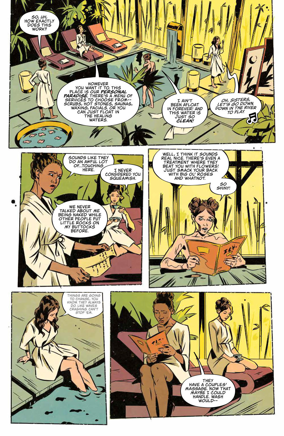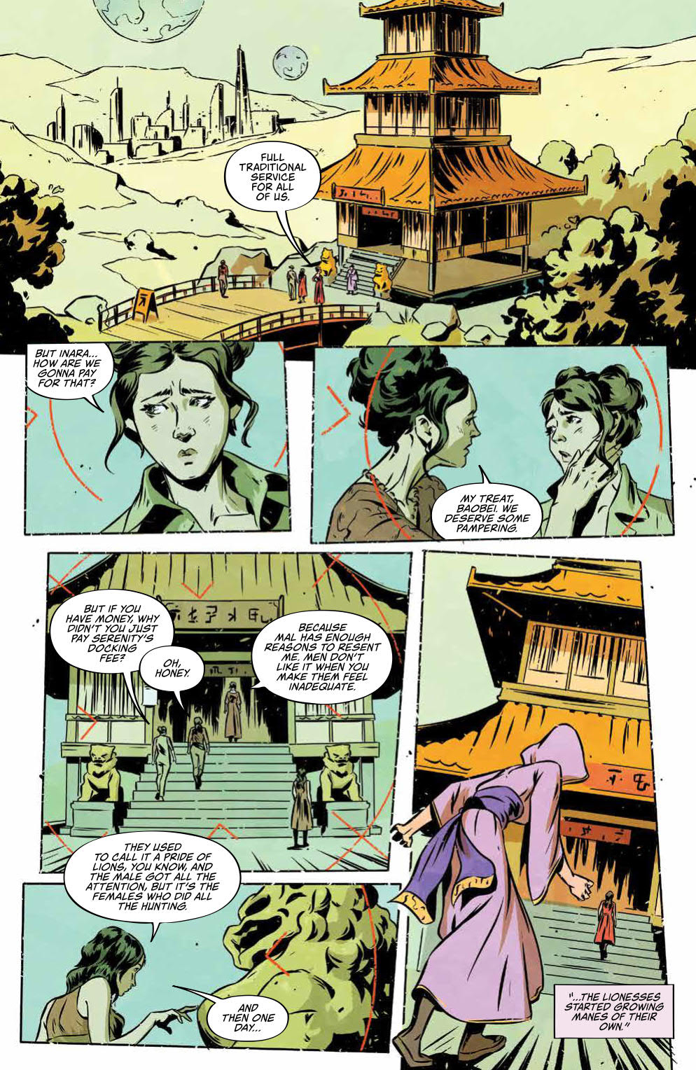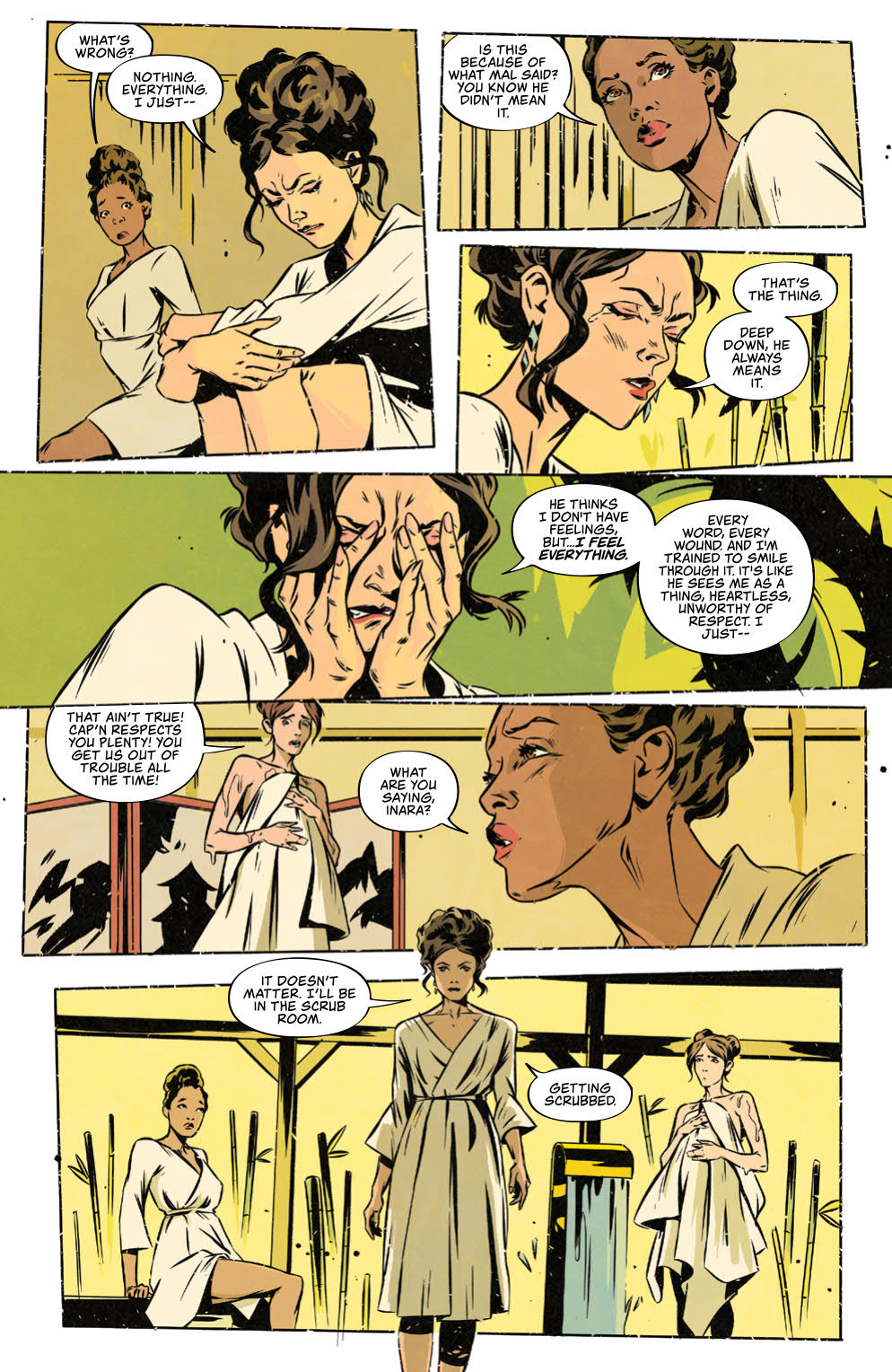 The story is great fun, with popular series antagonist Saffron forcibly “recruiting” Zoe, Kaylee, Inara and River into a diamond heist by threatening to blow up Serenity and its remaining inhabitants. Set between the events of the TV series and the movie, it slots easily into the existing continuity without requiring any prior knowledge and without impacting any future storylines. As such, runs the risk of feel inconsequential in the grand scheme of things, but there’s still a lot of great stuff going on here, particularly for fans who want to see the spotlight shine a little brighter on the female members of the Serenity crew.