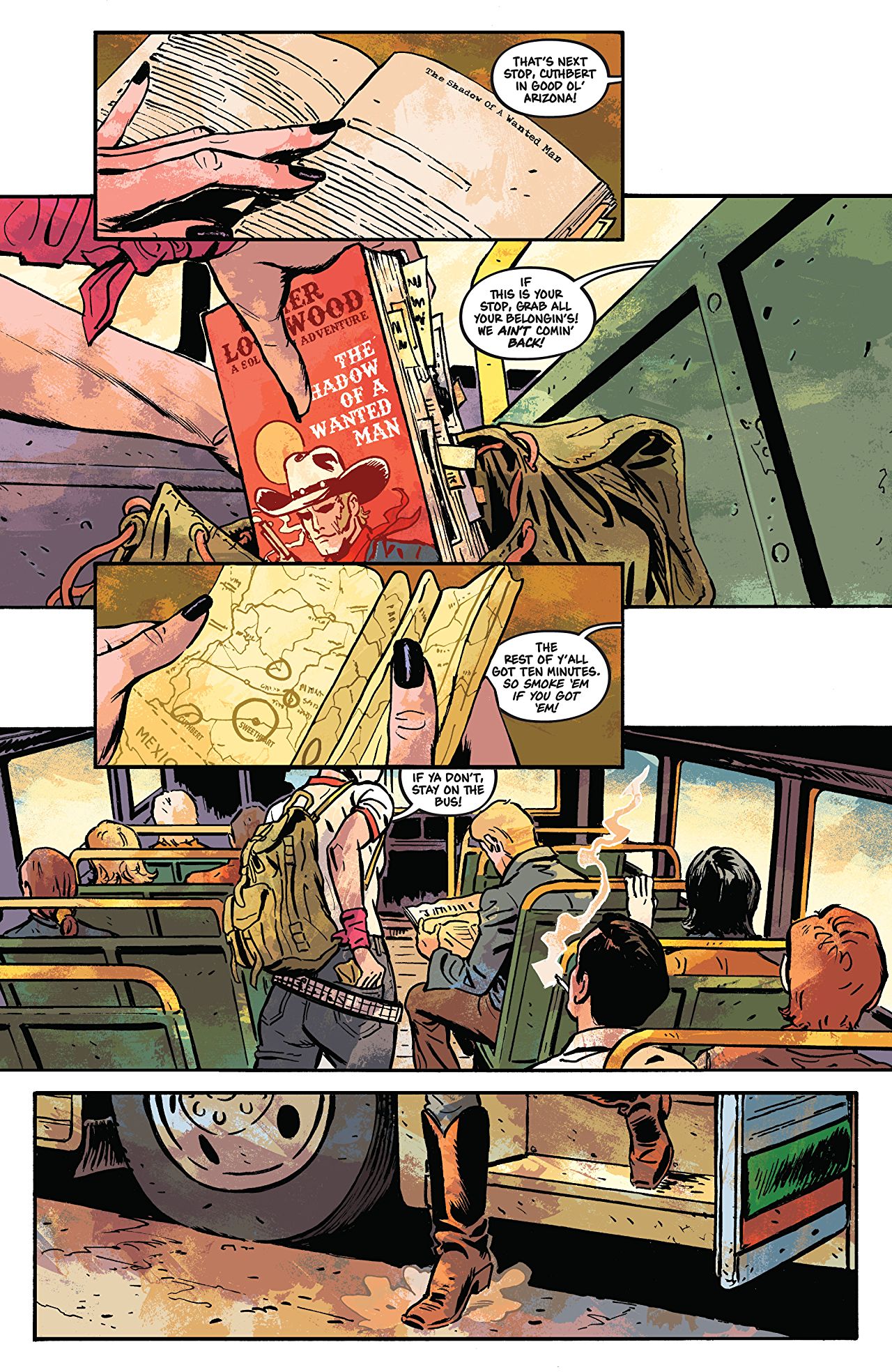 As you might expect, Undone by Blood is very much a metatextual series, effortlessly blending the gritty revenge story that is Ethel’s quest to find her family’s murderers with the equally gritty Western story, The Shadow of a Wanted Man, which pits Sol Eaton against a gang of bandits who have kidnapped his son as revenge for their previous encounters.
