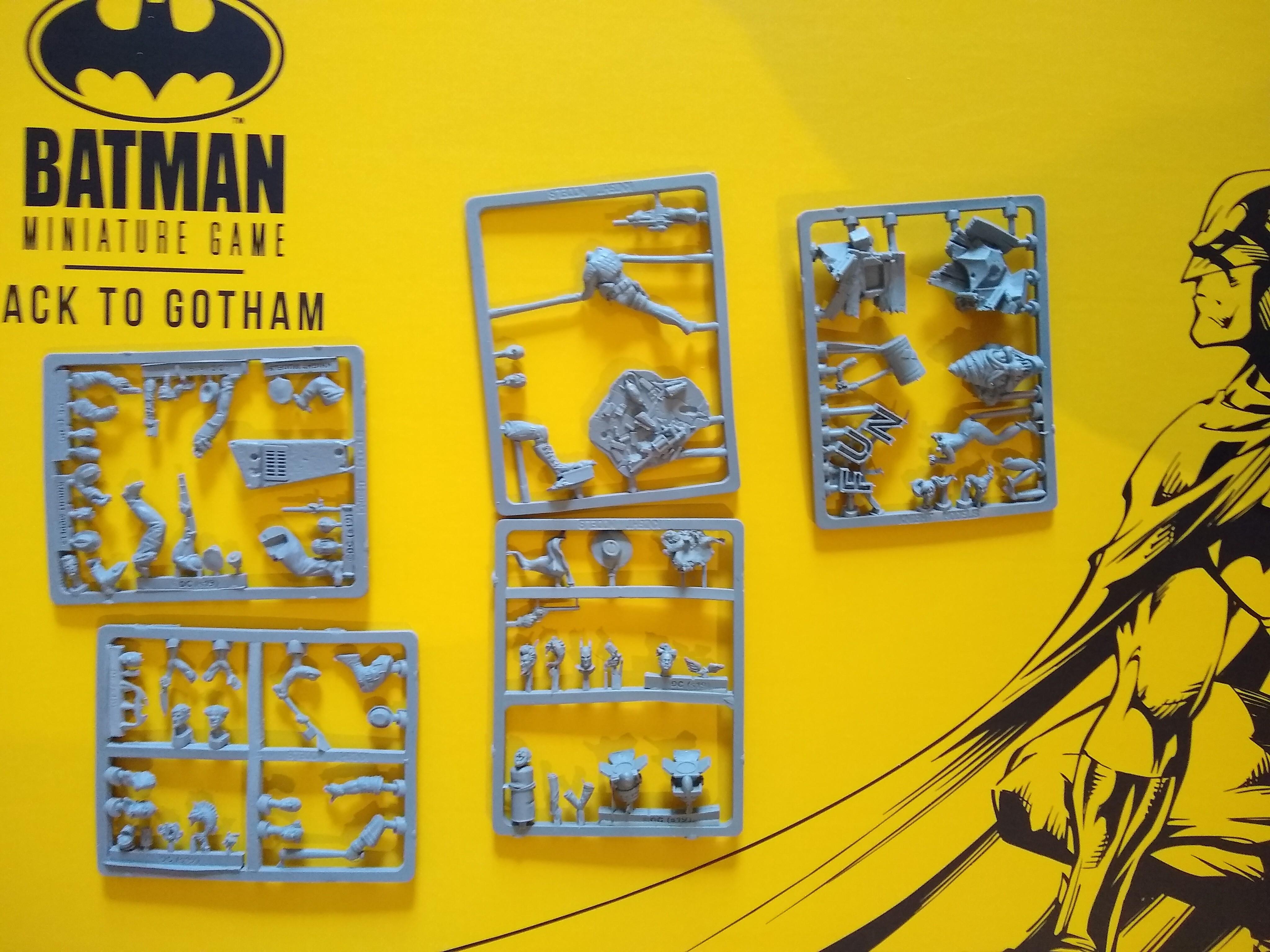 Opening the box, you are faced with two books: a purple START HERE Joker-themed intro campaign, which takes you through all the basic rules adding complexity at each step, and the main rulebook (also available online for free). The mini-campaign is an excellent introduction, and structurally it’s very reminiscent of The Walking Dead (you can spot Mark Latham’s fingerprints all over this). The back of the intro book includes clear construction guides for the figures and terrain also.