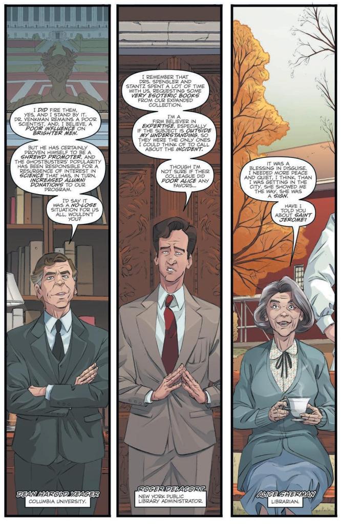However, cleverly intermixed with all these nods to its source material, is Burnham’s take on just how Stanz and Spengler were introduced to one another, courtesy of the smart-mouthed Venkman. These particular verbal exchanges could easily have been viewed by some as something of a sedentary sacrilege, yet due to Erik’s spot-on dialogue, such as Peter’s sassily going to “grab a slice with the Ladies Fencing Team”, as well as Schoening pencilling Egon with a “Doctor Who” length multi-coloured scarf, they arguably fit in with the surrounding canon reasonably neatly.