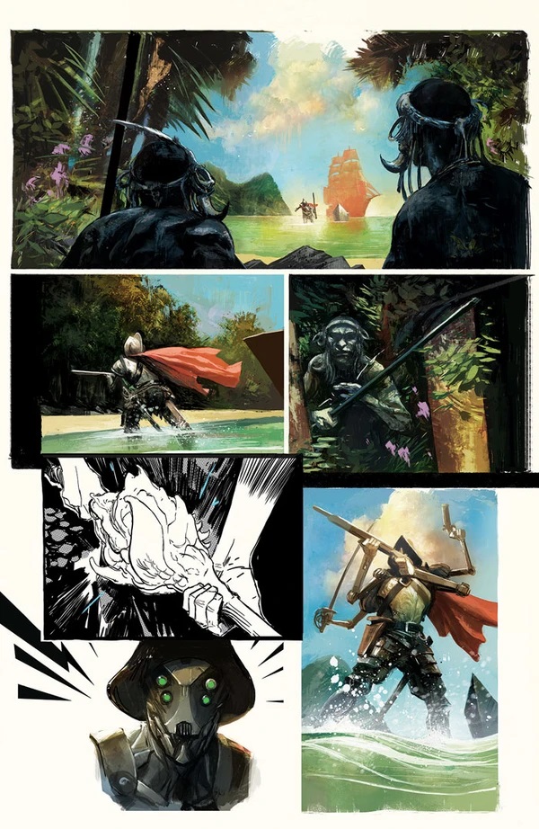 It’s admittedly a little tricky to follow and contextualise at times, with Huddleston’s intentionally chaotic artwork and rapidly shifting (and occasionally disappearing) colour palette making the whole thing feel like a mish-mash of storyboard, dreamscape and surreal experimentation. The effect is admittedly striking though, in spite of its disorienting qualities.