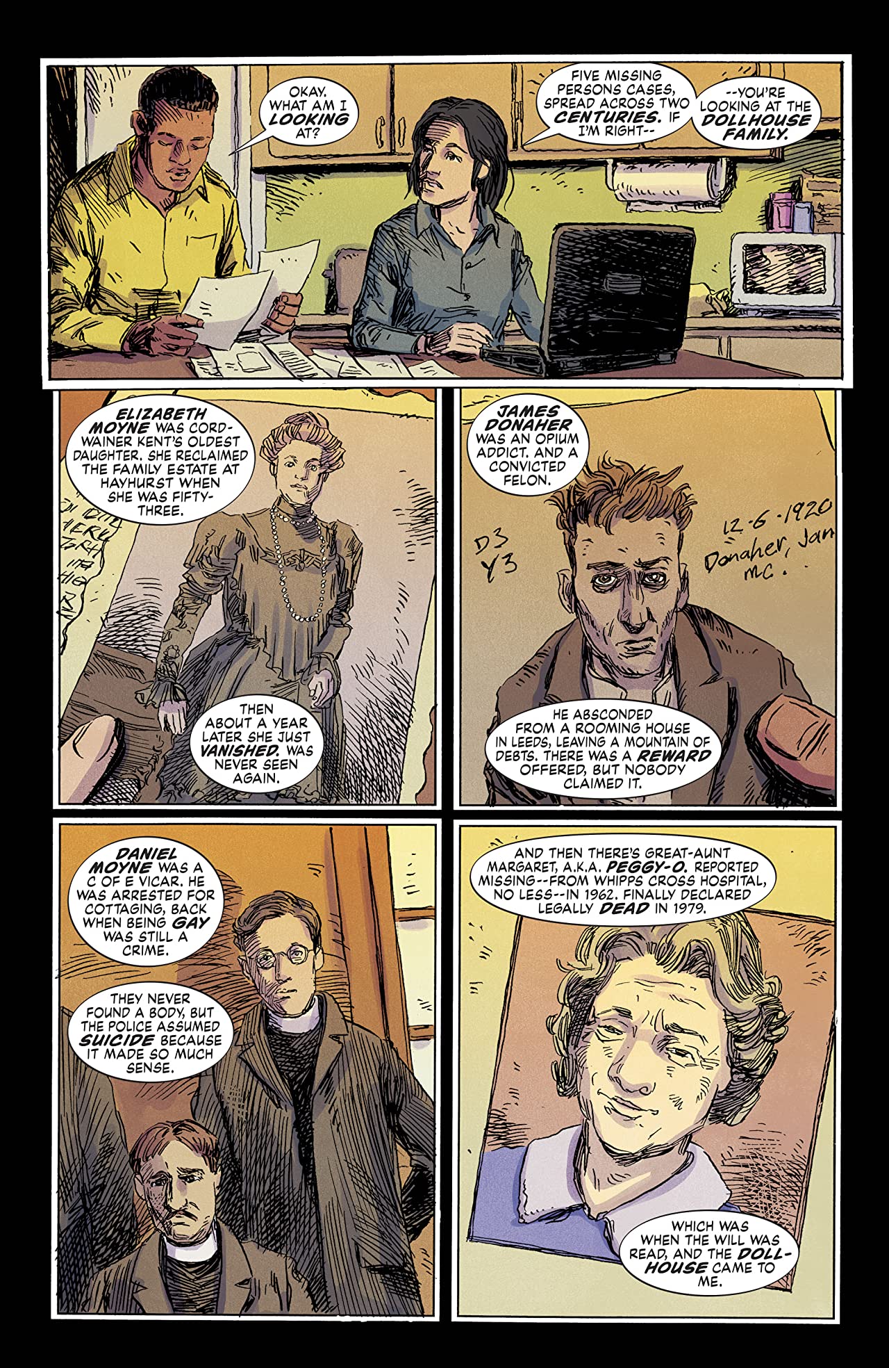 When Alice is forced to face the hard facts that now only are the police unwilling to help her find Una, but they are openly treating her as a suspect, she decides to take the fight to the Jenny, and Cloax. Unearthing the origins of Cordwainer and the rest of the Dollhouse family, Alice heads to her ancestral home in County Wicklow to try and find the origin of the dollhouse itself in an attempt to give herself any edge in her coming fight to rescue her daughter.