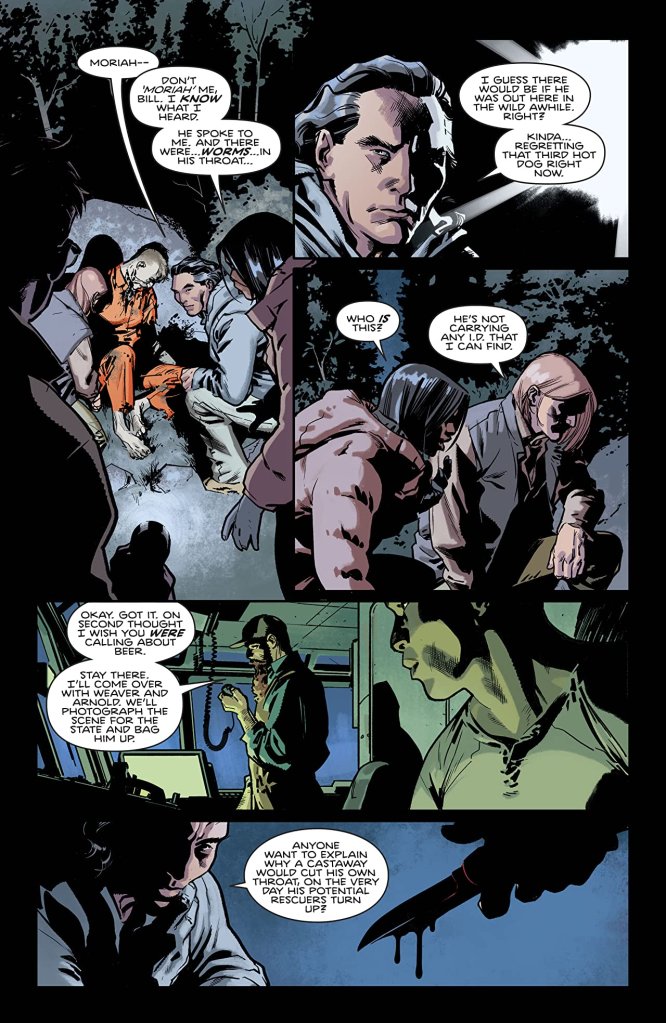 The art is again provided by Stuart Immonen and Dave Stewart, and it’s nothing short of fantastic. Again, I can’t really focus on too much without giving the game away, but you’re really going to want to pay attention to the Underwater scenes, and the discovery in the cave is just phenomenal to look at. Moriah’s attempts to capture an example of the deformed marine life just hit me as being straight out of one of William Hope Hodgson’s tales of the Sargasso, and the way the art is delivered is spot on – exactly how I would have imagined the scene if I’d been reading this in one of his collected works.