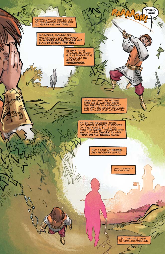 When Red Sonja defeats Dragan The Magnificent at the Battle of the Bridge, she unwittingly sets in motion a quest for vengeance as the child emperor Cyril sets out to face the man who betrayed his father and the she-devil with a sword.
