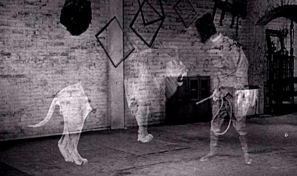 No, the only real frightening element of 13 Ghosts is the presence of the legendary Margaret Hamilton as Elaine, the housekeeper who comes with the house. Known to millions as the Wicked Witch of the West in the Wizard of Oz, she’s not a million miles away from playing the same character here. Young Buck is convinced she’s a witch and points it out more than once. She even walks about carrying a broomstick at one point.