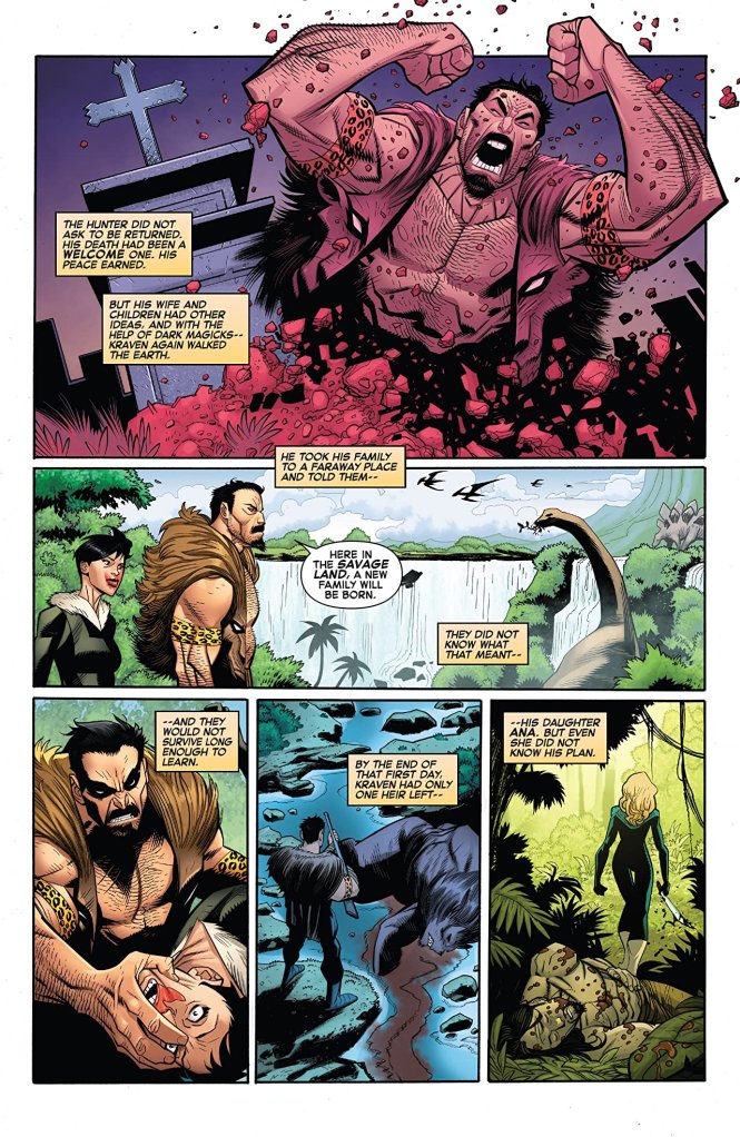 Thankfully though, the lack of the titular character actually seems to enhance this comic’s entertainment by allowing the two-time Cincinnati City Council candidate to predominantly pen an enthralling piece about Kraven the Hunter’s return from beyond the grave and reconciliation with an ever-evolving world; “Seeing his beloved creations die over and over, unable to withstand any more heartbreak, the High Evolutionary relented.” This spellbinding spotlight upon Kravinoff’s eighty-seven clones, and the resultant murders of all but one, really is a cracking yarn, and does a good job of showing just why an utterly disillusioned Sergei would turn to fellow villain Arcade for help.