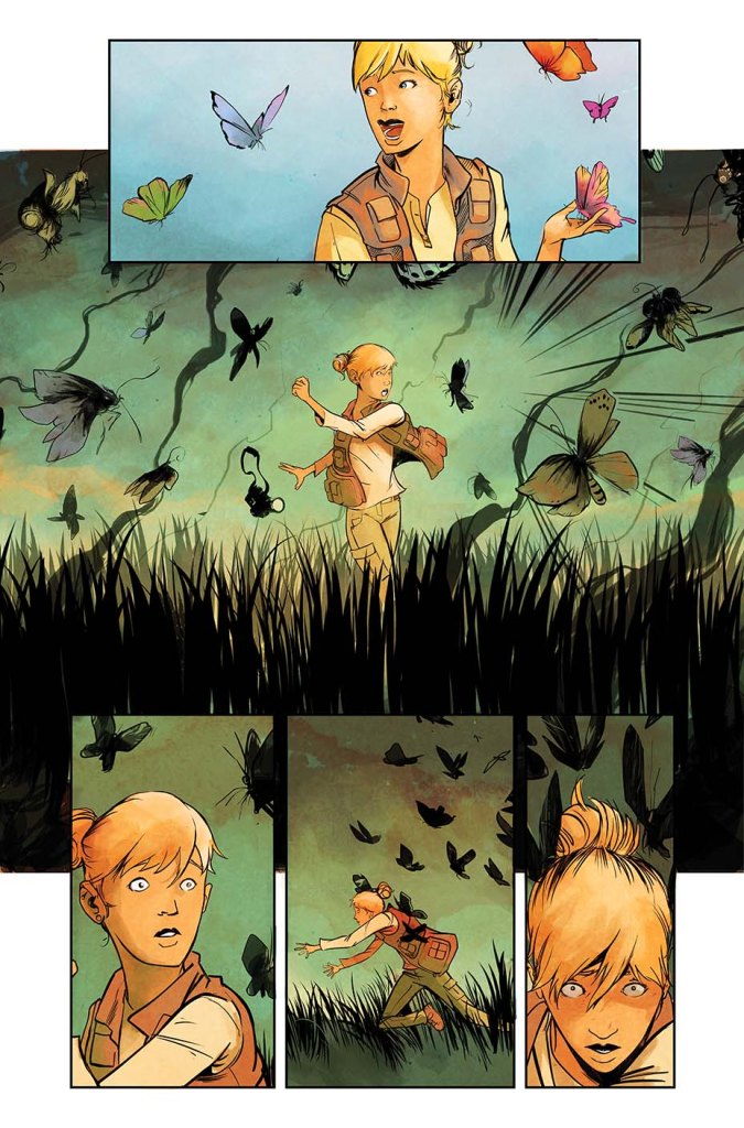 The art, like I say, is bright and breezy with lots of lovely touches. The use of the butterflies works so well that the overall effect is disarming. Obviously there’s a fine line to be walked when looking at something real for the purposes of entertainment, but the team here have taken liberties with storytelling whilst maintaining a sensibility to the very serious effects still ongoing today.