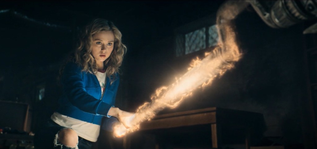 Things don’t go particularly well for the JSA as they end up being wiped out almost completely, with the only survivor being Pat Duggan (Luke Wilson), sidekick to the mighty Starman (Joel McHale), who finds himself entrusted with his former partner’s Cosmic Staff to pass on to a worthy successor (just not him, obviously). From here we flash forward to the present day, with Pat now married to Barbara Whitmore (Amy Smart), whose young daughter Courtney (Brec Bassinger) is poised to discover her stepdad’s secret life – and Starman’s Cosmic Staff – and embark on a little superheroism of her own.