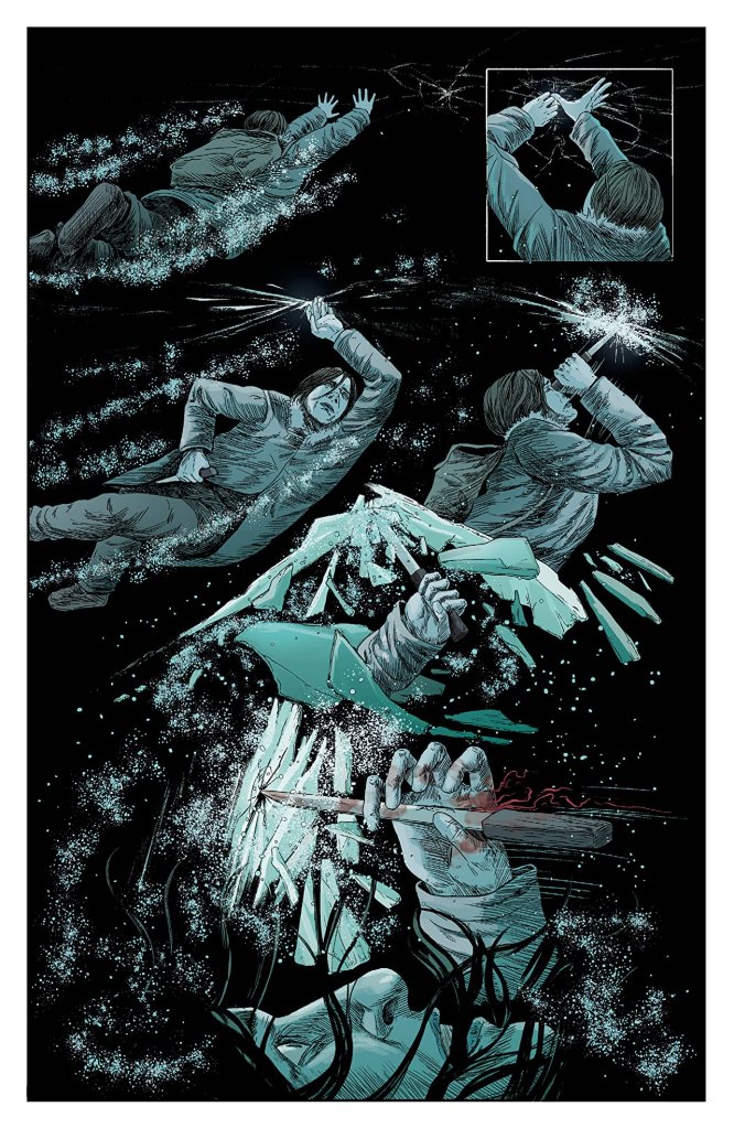 LONNIE: You might be the only person on the planet who liked the journal text section. That’s not true, but I did get a lot of complaints about it, which I think are ridiculous and actually make me quite happy. I got one just yesterday in fact. I’m not the first person to do this kind of thing, which is partly why I think the reaction to it was so absurd. Alan Moore does it all the time. Hickman and Gaiman have done it. And! This was the only book on shelves out of hundreds to have pages of text, so I think people can deal with a little extra reading. I love to provoke. I love to illicit a response. I love pushing readers to new places, but with this, I did it because I thought it was right for the story. I didn’t even think twice about it, or that it would be a big deal. It was seeded from the very first pages of the first chapter, so I don’t think it was even that much of a surprise.