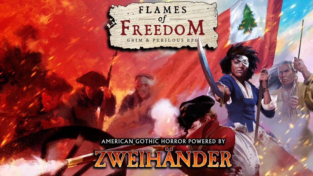 If you like horror, alternative history, conspiracy, and the potential for sedition in your roleplaying games then Andrews McMeel Publishing just might have a Kickstarter campaign for you. Launching on the 5th of October, Flames of Freedom is a powered by Zweihander game of gothic horror. Promising grim and perilous roleplaying, this is your chance to either accept your lot or take arms and fight. Whether destined for greatness or death, at least you’ll die a hero…