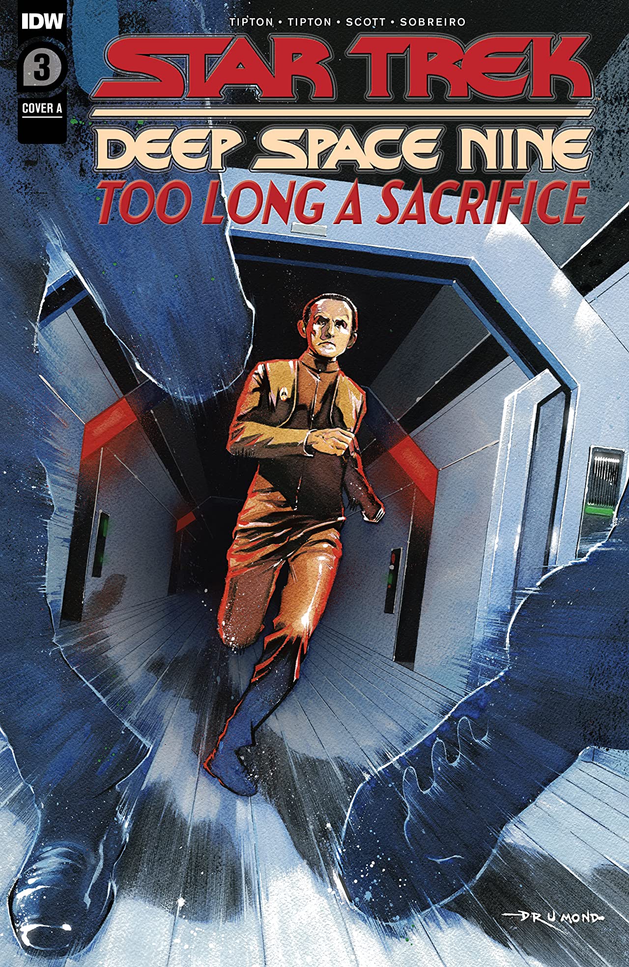 As comic-long conversational pieces go, Scott and David Tipton’s narrative for issue three of Star Trek: Deep Space Nine – Too Long A Sacrifice isn’t quite as plodding as it initially appears, thanks largely to the cold-blooded murder of a pair of unfortunate Ferengi outside Docking Port Five. However, up until this latest in a long line of despicable deaths on board the Federation facility, this twenty-page periodical arguably consists of nothing more than a disconcertingly word-heavy dialogue between Odo and Detective Retlaw as the two men seemingly try to outdo one another in a bid to demonstrate their superior investigative ability.