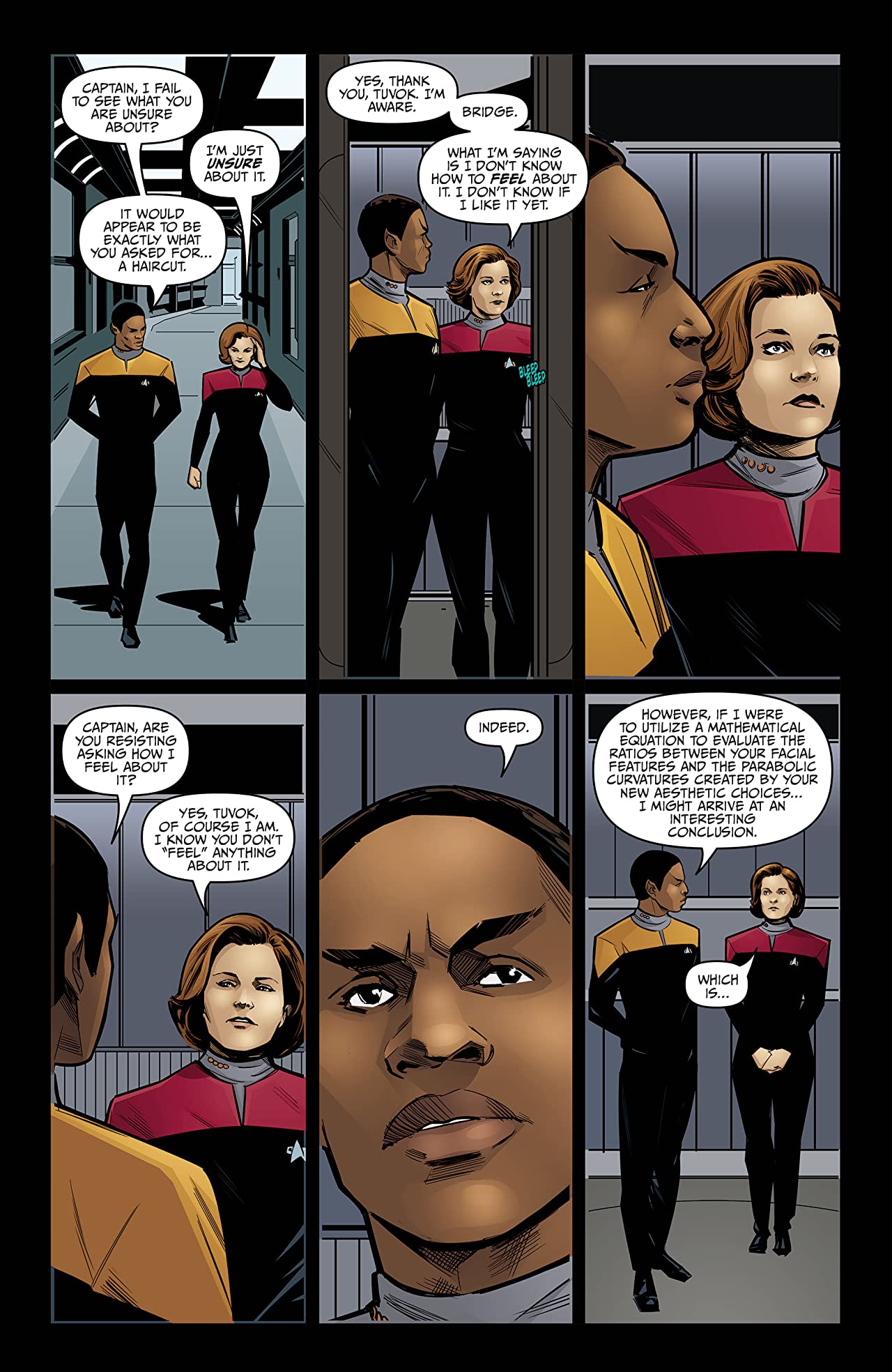 Series writer Dave Baker delivers the opening of an intriguing story here which is very much in keeping with the story telling and allegory of the era. There’s a very Next Gen morality play vibe which Voyager tapped into, and this issue could easily pass muster with the openings of some of the better episodes. Uyetake’s lettering obviously helps immensely in that respect, providing an easy, comfortable read throughout.