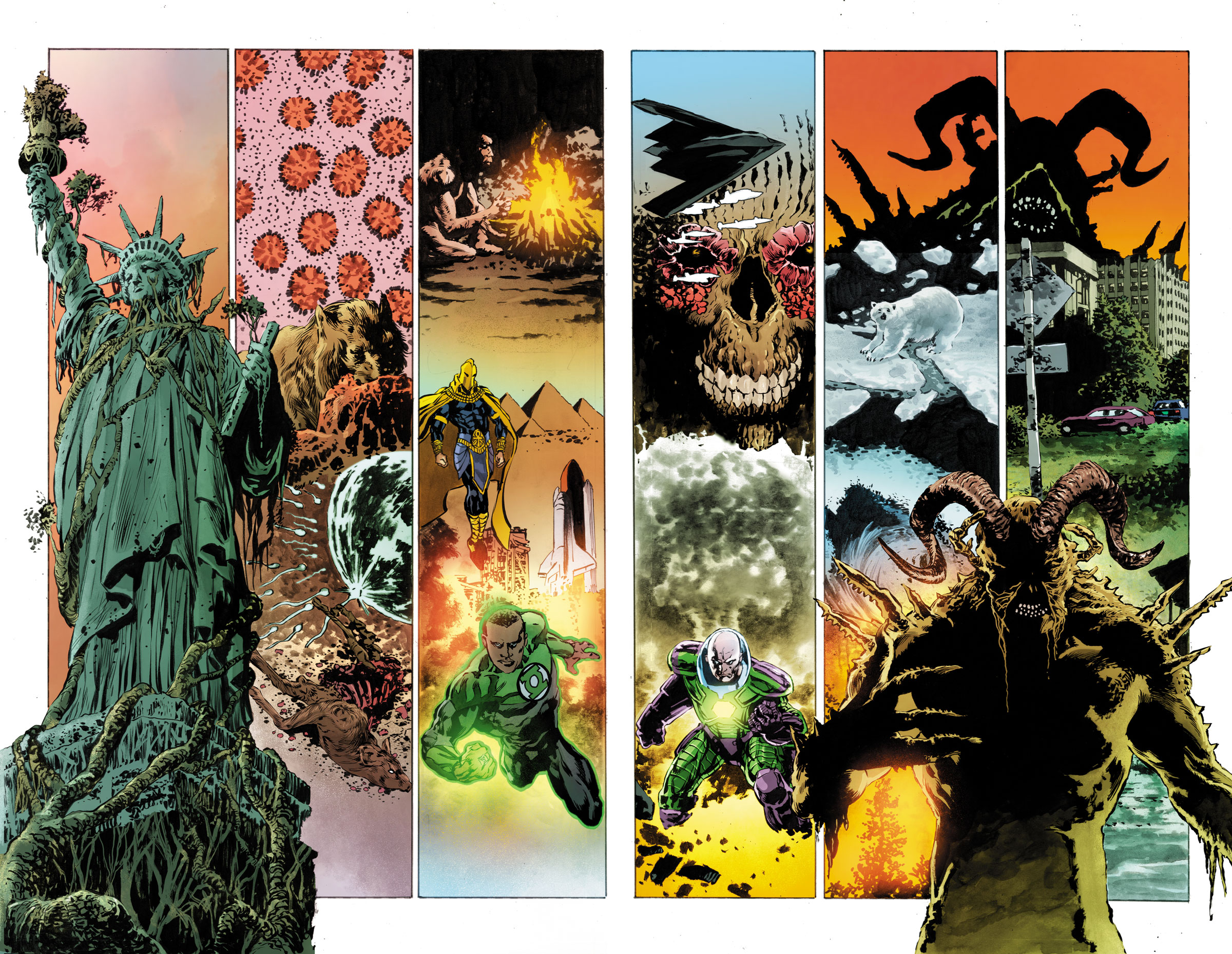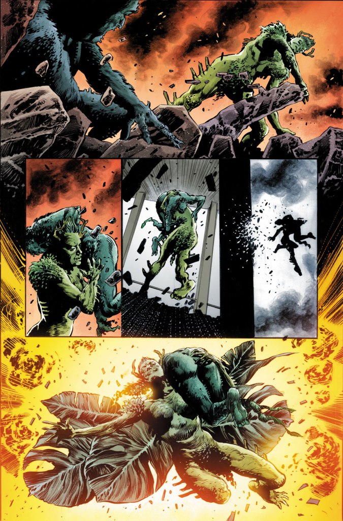 From the ashes of a terrible war, life blooms anew in Swamp Thing’s image. The remnants of humanity lie in hiding, forever in the shadow of the green god who now rules the planet. When the new avatar of the Green uncovers a stray human, a rebellion is revealed! But this Swamp Thing is no stranger to violent ends, and neither are his creations. If it’s war humanity wants, it will be at their doorstep—and Swamp Thing will never be the same!
