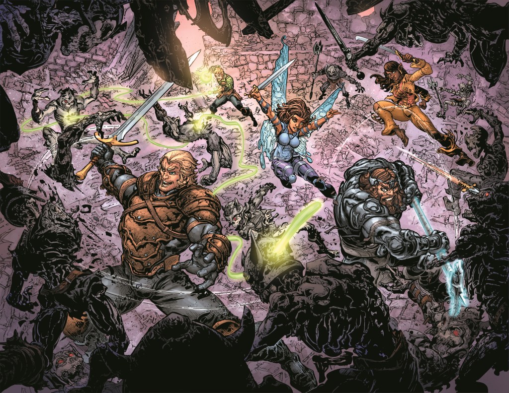 He continued, adding “I love fantasy (I spent a good portion of my career drawing The Dark Elf adaptations by R.A. Salvatore), and I wanted to smash together the tropes of that genre with the world we live in today. Our ‘heroes’ are essentially thieves, as they steal treasure. How does a character like that play in modern America, a place teetering between ‘woke” liberalism and ignorant conservatism? Also, I get to work with Freddie and Jeremy whose work I loved on my INJUSTICE v. MASTERS OF THE UNIVERSE comic from DC.”