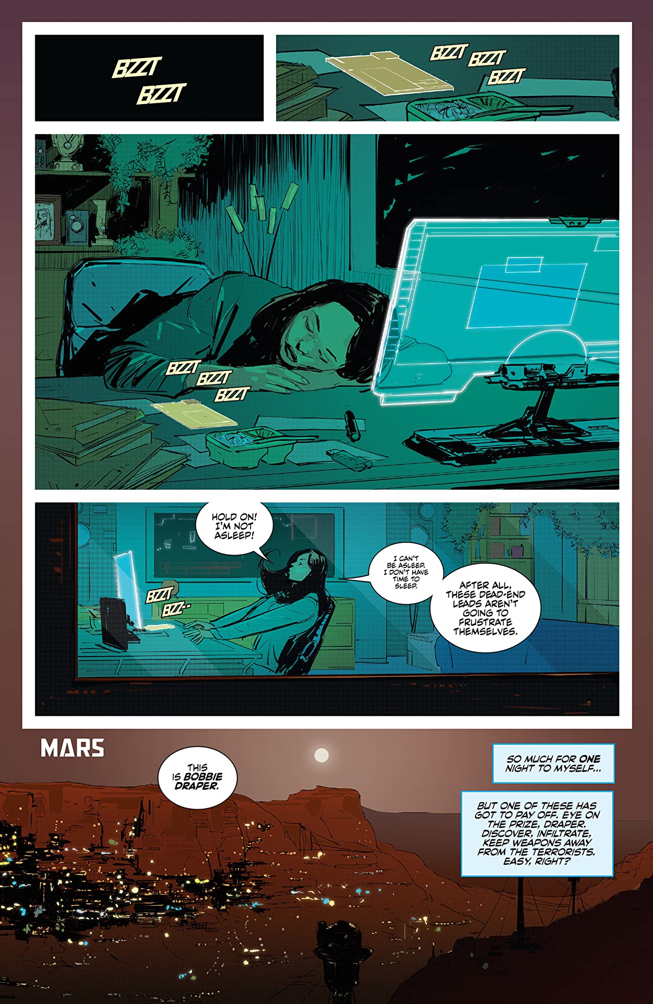 Instead of focussing on the crew of the Rocinante and what could be considered the ‘primary’ protagonists, here we get more of the strong but recently humbled Avasarala and the disenfranchised Draper. Series writer Corinna Bechko has a hard task to maintain the quality I’ve come to expect from the series, but manages to deliver not only intriguing plot threads, but also capture the voice of the characters; and the actors behind them, for that matter. We have a combination of immediate threat, grander concerns and the insidious, clawing underworld movers which all work to highlight just how complex and lived-in this world feels.
