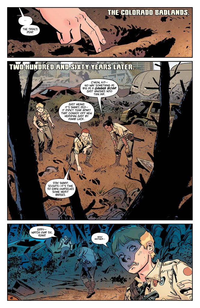 This first issue introduces us to Kit, an Eagle Scout who is rising through the ranks and trying to adhere to each of the seven sacred tenets. Well… most of them anyway. Y’see, Kit has a secret. A secret which took me completely by surprise when it was revealed midway through the issue, and which I’m going to avoid talking about here because I don’t want to spoil it for any first-time readers.