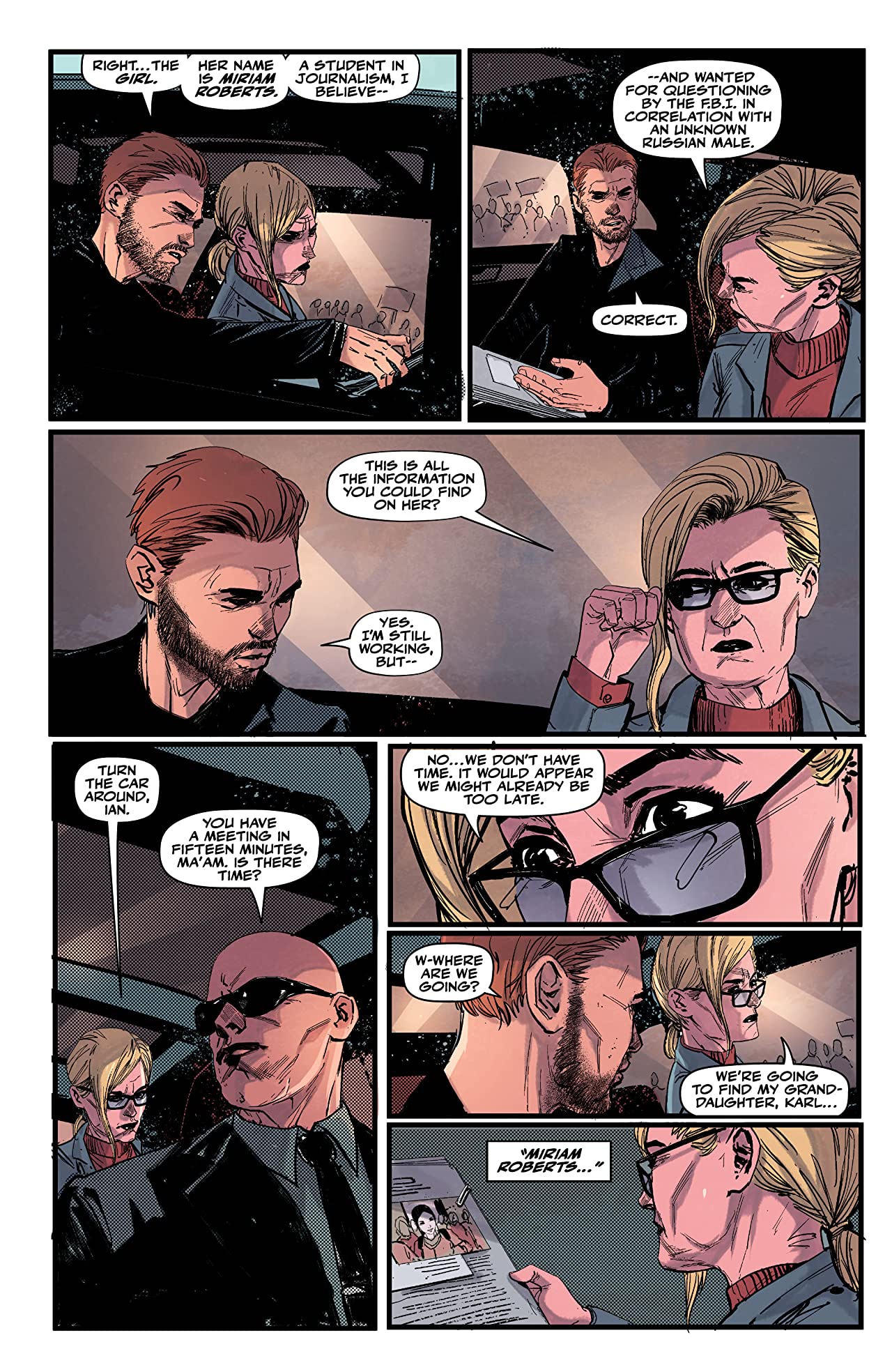 I particularly like the way the characters are being developed; Sasha has an extremely difficult job ahead of him, I love the way he initially comes crashing onto the scene, the white knight come to rescue fair maiden, and it’s great to watch him deflate and have to radically rethink his approach when Miriam doesn’t just jump on the back of his metaphorical horse to join him on his quest. Being a journalism student, Miriam has the healthy level of scepticism that you would expect of an investigative and enquiring mind, but it’s tempered with a certain level of petulance that speaks to her age and lack of experience as well as, given Sasha’s revelations about her family, a feeling of abandonment and betrayal.