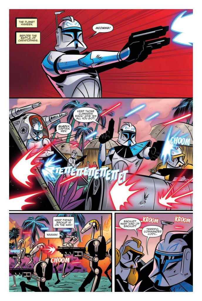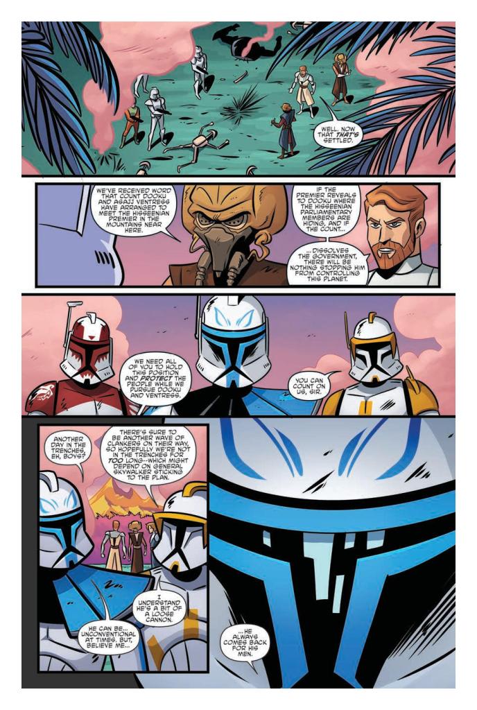 For me, this ticks all the boxes that you could want from this kind of product. Sure, it might play it safe, but it’s difficult not to read the words of Cody or Rex without hearing Dee Bradley Baker’s voicing, or experience that nerdy ‘squee’ from the lightsabres or ARC jet packs. Of course, there’s a lot of established material which writer Michel Moreci and his expansive and varied artistic team lean on here, but the final product looks good and is, most importantly, fun. It’s also a chance for some more Plo Koon who I have a real soft spot for!