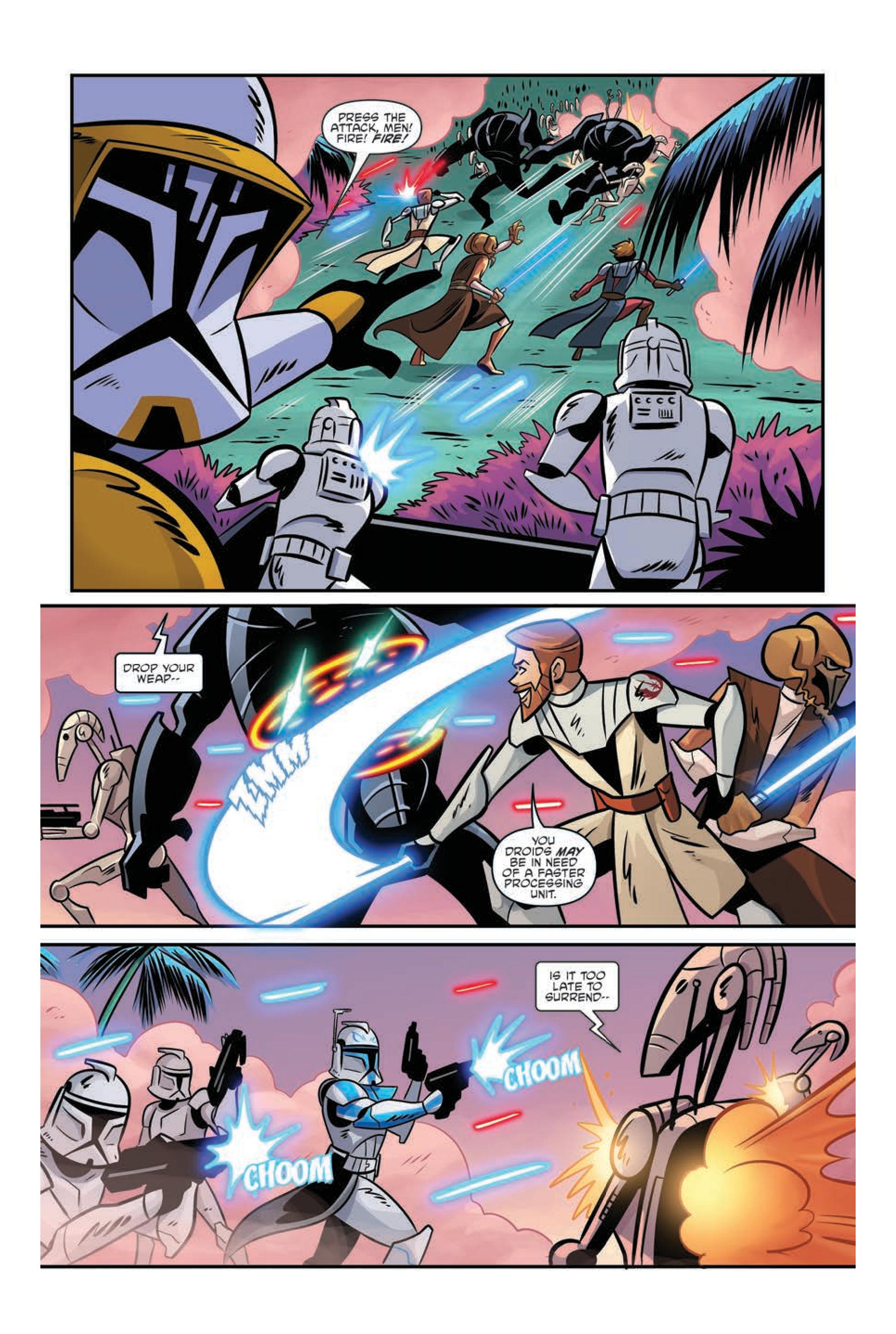Speaking of looks, it’s hard to sum up all of the talent on display throughout the course of this volume. As a bit of an ensemble work, the styling and personal choices do chop and change a bit with each chapter. I appreciate the chance to see different takes on what could be considered the ‘codified’ look of the Clone Wars era, but I do appreciate some might find it a bit jarring. Some of the most effective panels for me were the simplest. The choice of bold thick lines with the vibrant contrast of colour on the troopers’ armour or Jedi splashes really popped and evoked that classic four-colour action feel.