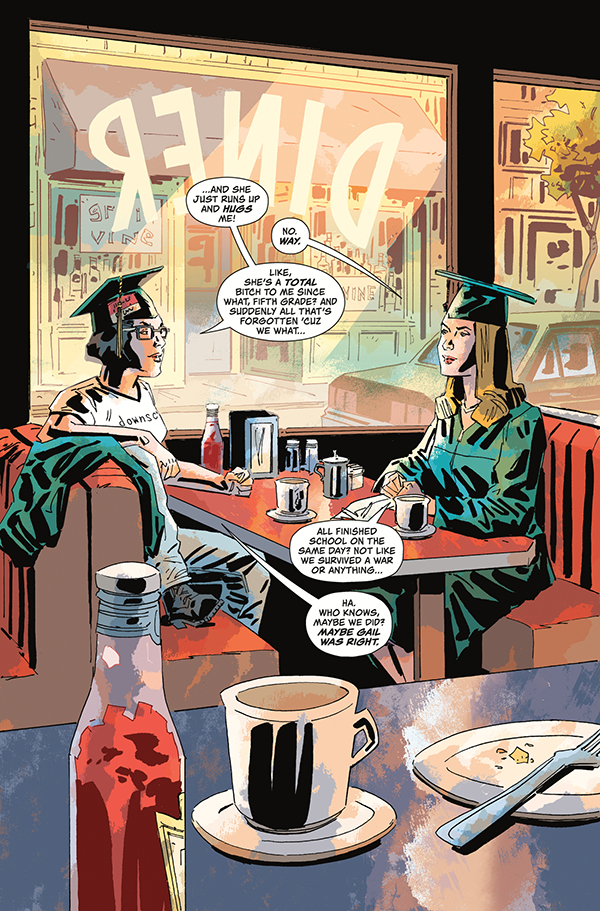 Patton Oswalt automatically gets insane amounts of kudos from me for including an excerpt from a Philip Larkin poem in this story. When I was about 10, my mum’s favourite “punishment” was sending us to our rooms to learn a poem, which we then had to come down and recite word perfect to her. One time, as an act of rebellion and in a childish attempt to be cool, I chose this poem, which seemed a great idea until I had to stand in front of my mum, gran and grandad and utter the words “They fuck you up, your mum and dad.” I have never forgotten this poem or the burning hot haze of embarrassment that accompanied it, and still does to this day. I also really liked that all the way through I was reminded of Daniel Clowes’ Ghost World, and then, as if aiming a knowing wink in my direction, I found a quote from Aimee Mann’s song Ghost World at the end of the issue.