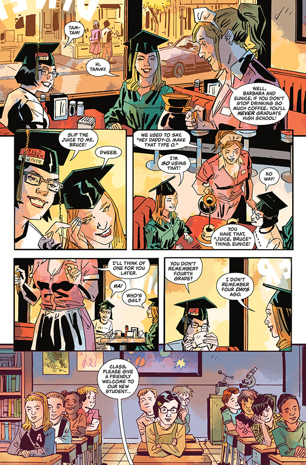 As much as I love the depiction of Gail in this story both narratively and artistically, I think that the depiction of Eunice is just brilliant. I think that it makes her a much more real and sympathetic character, one that I became invested in very quickly, and I’d actually quite like to read a book just about Eunice’s travels and travails.