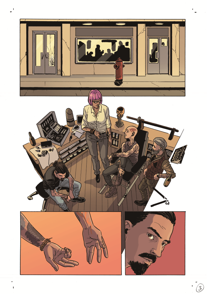 In Bunn’s own words, “EDEN is the story of Niles, a tattoo artist who is stuck in something of a rut. His life is a cycle of work, drunkenness, and guilt—lather, rinse, repeat. All that changes for him, though, when a mysterious young woman named Eden walks through the doors of his tattoo shop. She’s looking for something… different… and she finds it with Niles. But Eden is a woman surrounded by deep enigmas… not the least of which is how and why her new tattoos vanish after only a few days. As Niles learns more about Eden, he is driven to fathomless depths of both love and horror.”
