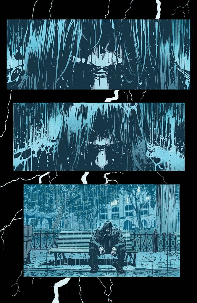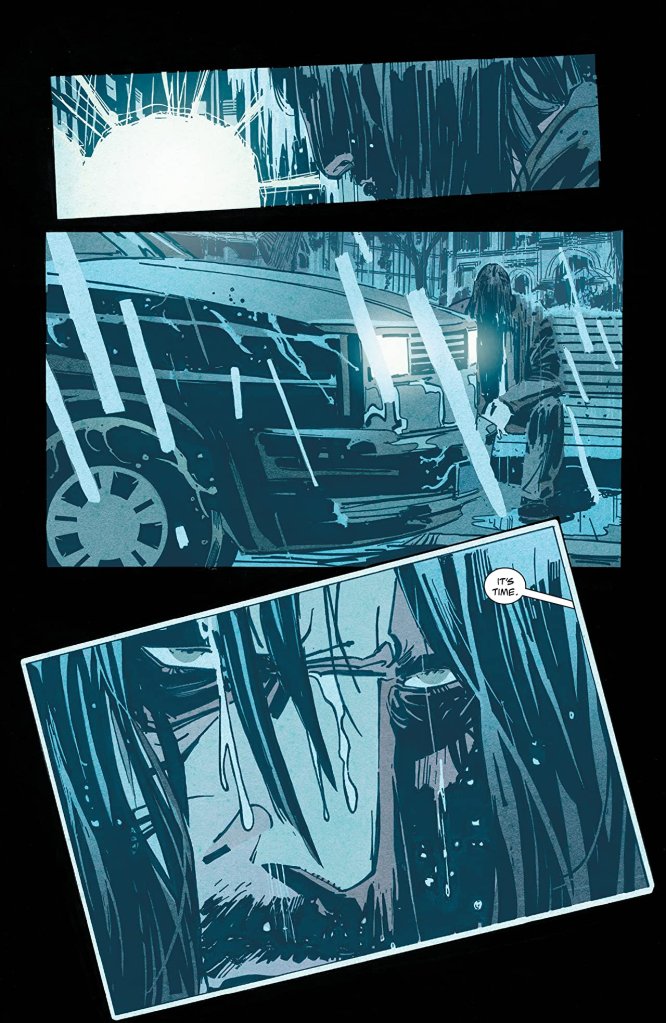 In fact, there’s so little written that you could pretty much turn the auto scroll feature – if you have access to the book digitally – and for the most part you can read the whole issue without pausing or going back. The voiceover narration technique also makes what you’re seeing somewhat pointless. The reader continues to endure each panel until the story finally catches up with the character(s) in the present time. In this case, it takes 36 pages until you see who the main character is talking to. Honestly, BRZRKR feels so insular that I completely lost my excitement as the story went on.