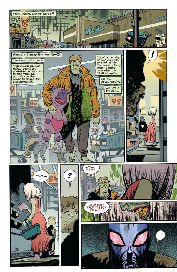 Okay, so it’s probably cheating somewhat to have B.P.R.D. and Rumble in this list, as Harren has been heavily involved in both, but it does serve to illustrate the pedigree of creator that is involved with this title. James Harren IS a superb artist, there is no denying that. He’s capable of producing some incredibly horrific, haunting artwork and the work in Ultramega is no exception. And when paired with Dave Stewart, one of the absolutely best colourists working today, you have a book that people should be buying purely on the strength of how good it looks.