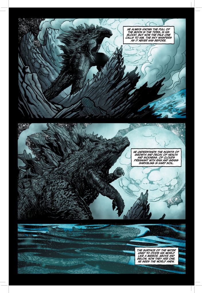 I’m firmly in favour of writer Greg Keyes’ decision to frame the entire story from Godzilla’s perspective rather than trying to show us things through the eyes of yet another a hapless human caught up in the conflict – an approach we’ve seen time and time again over the years, and which has become more than a little played-out along the way.