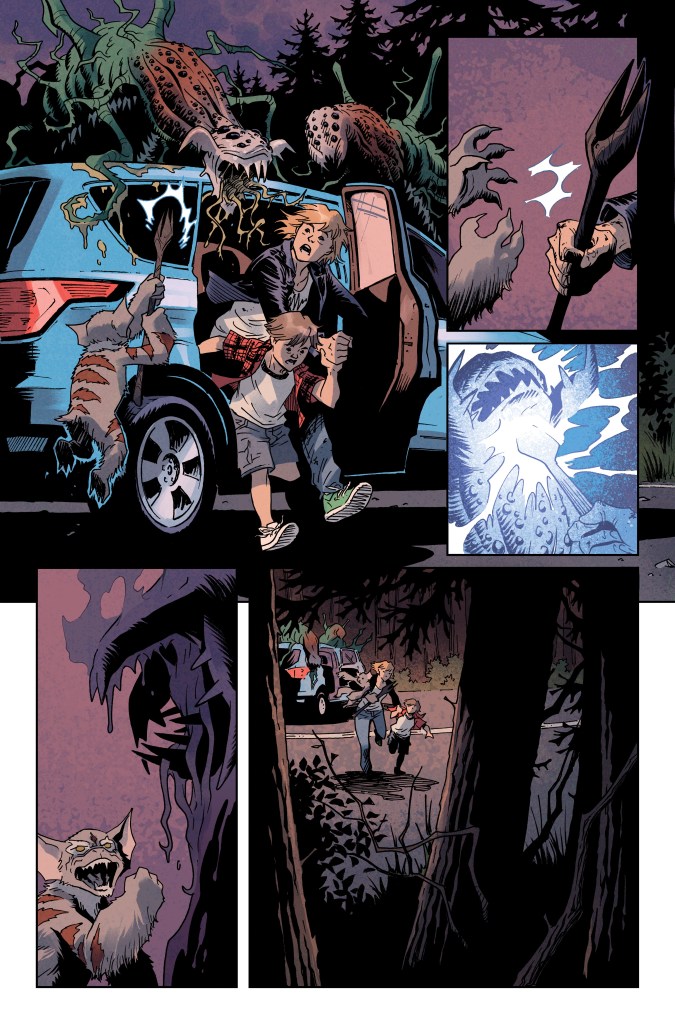 Coucerio continued, adding “When Ed and I started working on this project my first step was designing creatures and characters until we were both happy with them. I think that process helped me set the art approach that best suited the story. Everything else went smooth after that. Also, I have worked with Ed on many books for a long time so working with him is always a pleasure and everything flows easily. The final piece was the color and Patricio’s work fitted perfectly.”