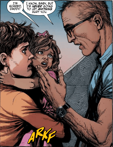 The dialog here isn’t as copy and paste as you might think, and is perfectly used as foreshadowing. While I called them parenting clichés, these snippets of dialogue are key to the backbone of the narrative. Do not go into issue 1 thinking this is just like every other disaster situation, because this is expertly plotted by Geoff Johns and those more familiar with his previously works should expect this.