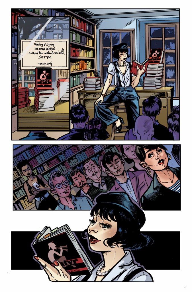 Leiz was similarly excited about the new project, adding “When I read the first script for THE LAST BOOK YOU’LL EVER READ, I was immediately captivated. It got its hooks in me. This mixture of horror, suspense, and sensuality already inspires my art. Being an admirer of film noir and 50’s style, I wanted to bring a little touch of both to the book. Marlene Dietrich, Lauren Bacall, and Audrey Hepburn inspired me when designing Olivia, who’s a mysterious and cold, but fragile character. Every issue is full of action, and Cullen manages to keep me always in suspense. I always look forward to reading the new script, and I can’t wait to read the end of the book… just hoping that it isn’t really the last one.”