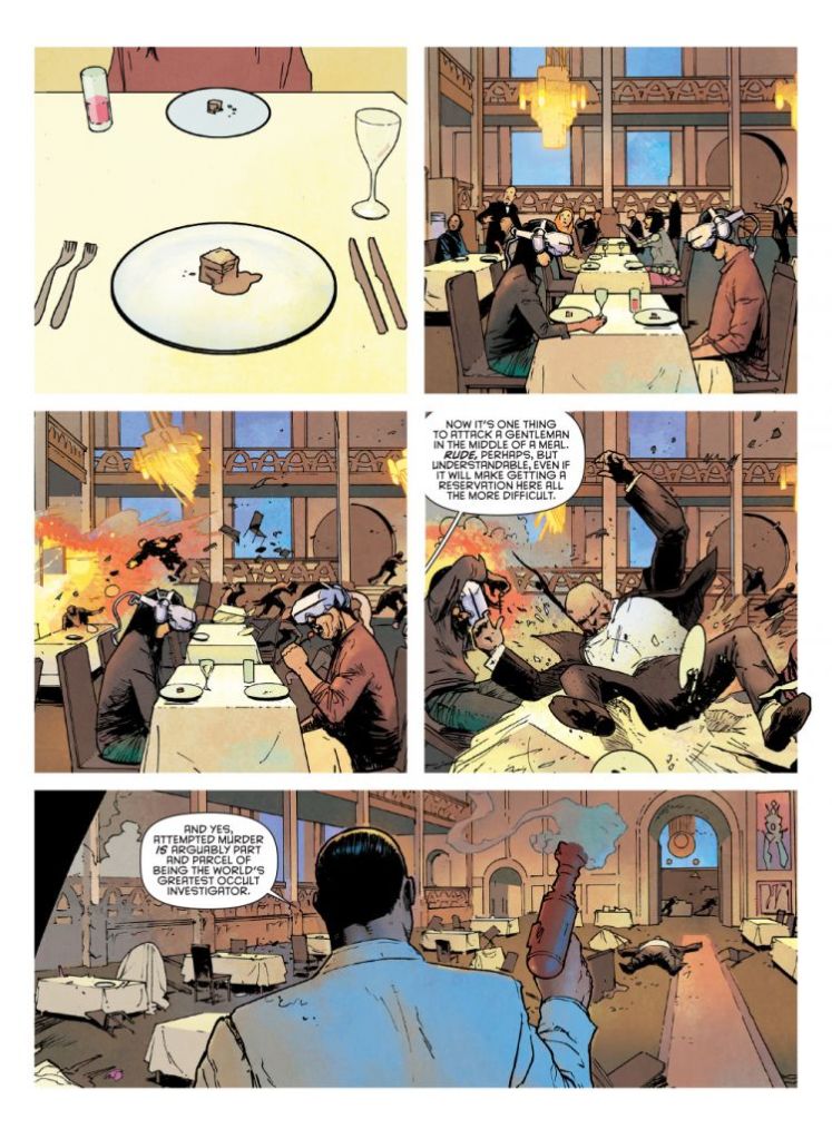 Despite Devlin Waugh being firmly set in the world of Judge Dredd, that 1920s British upper class persona that accompanies his endeavours is what I think really makes him so utterly, devilishly charming and makes even his most indefensible actions defensible. This particular set of stories manages to combine straight up horror with some wonderfully Lovecraftian themes and twists, turns and fantasies that are reminiscent of Neil Gaiman, Alan Moore and Grant Morrison. There is also a wickedly irreverent sense of humour to his exploits that is reminiscent of Rik Mayal’s Lord Flasheart or for those of you with a more literary bent, George MacDonald Fraser’s depiction of the life and times of Harry Flashman after his expulsion from Rugby.