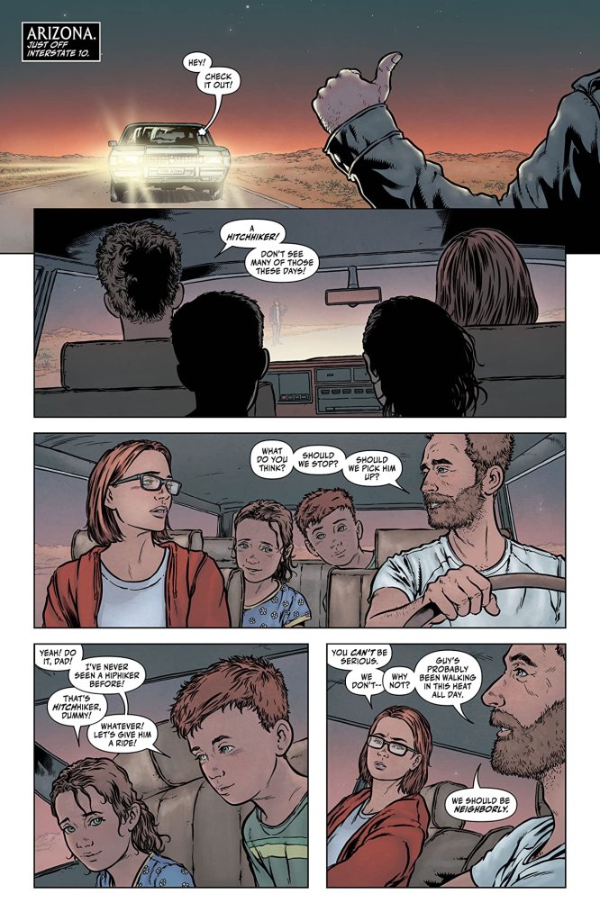 It’s abundantly clear why Valiant Entertainment are already referring to Cullen Bunn and Jon Davis-Hunt as a “bone-chilling team”, particularly if the collaborative creators’ work for issue two of Shadowman is anything to go by. Indeed, considering that this terrifying tale will probably wrong-foot many a bibliophile with the horrific outcome of just its opening sequence – a sequence which involves a seemingly harmless family foolishly stopping to ‘rescue’ a homicidal hitchhiker – there will doubtless be a timid few within the comic’s audience who will find themselves momentarily pausing before gingerly turning this title’s pages and casting their eyes upon the next instance of abject gruesomeness.