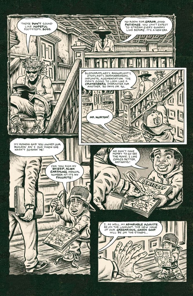 Right from the get-go, Piskor’s boundless enthusiasm for the twisted world he is creating is on full display here. There’s an impressive depth of world building in this series, belying its outwardly shlocky exterior, along with some wonderfully quirky new characters introduced throughout the course of the issue.