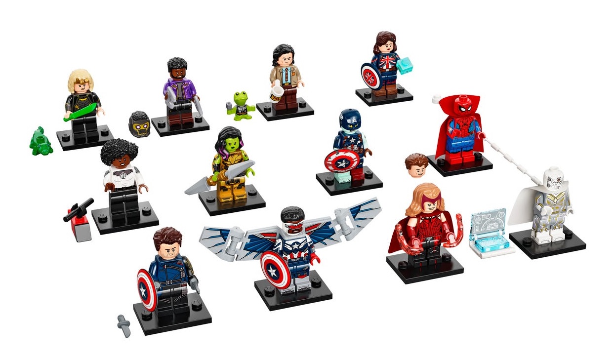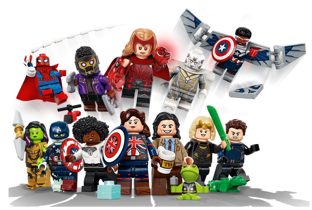 Action lovers young and old can collect, display or add cool character minifigures into their current playsets from Marvel Studios Original series WandaVision, The Falcon and the Winter Soldier, Loki and What If…?, featuring The Scarlet Witch, The Vision, Monica Rambeau, Winter Soldier, Captain America, Loki, Sylvie, T’Challa Star-Lord, Captain Carter, Gamora with the Blade of Thanos, Zombie Hunter Spidey and Zombie Captain America.Collectible fun