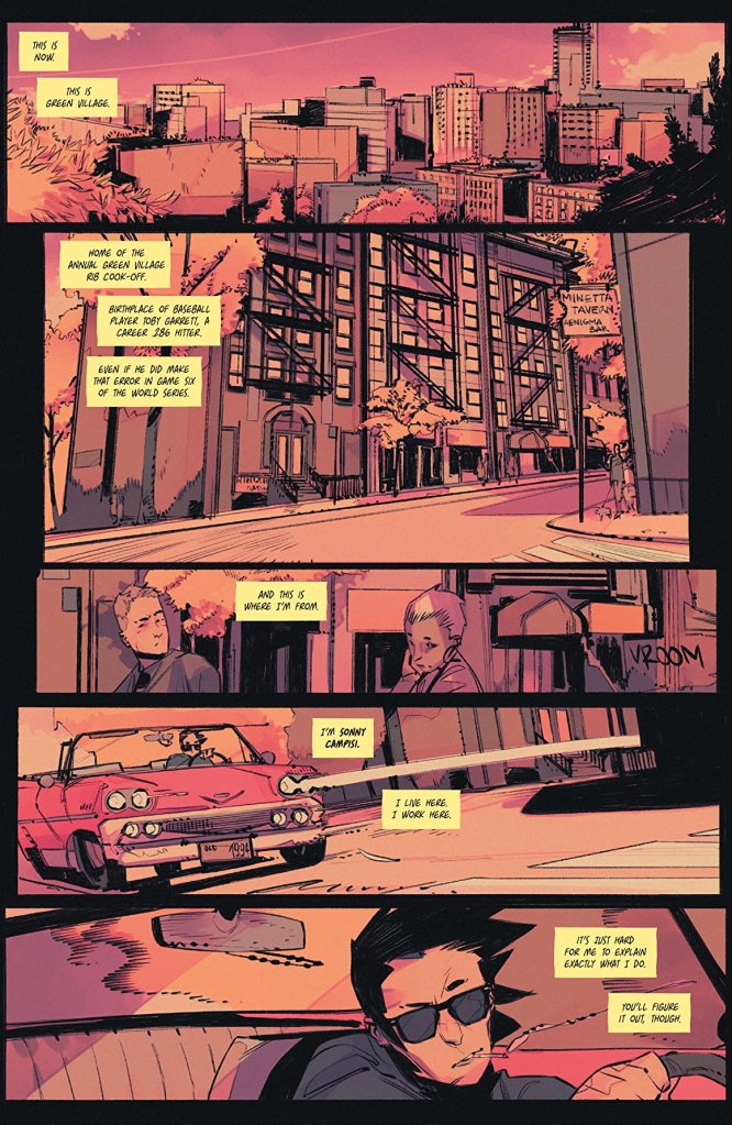 I like James Patrick’s writing. It’s warm and funny and tense, and vicious at times, and Sonny Campisi comes across as a character who is inherently capable in any situation. There’s a little bit of a young Henry Hill, and something of Clarence Worley in Sonny Campisi. He’s a gangster but he’s a gangster with a heart and a genuine concern for the neighbourhood he looks after.