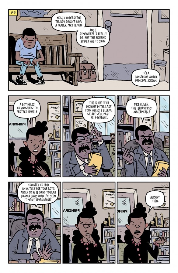 On the visual side of things, Starks continues to pack a fantastic amount of detail, motion and emotion into his ostensibly stripped-down style. There are so many fantastic artistic flourishes along the way that it’d be difficult to list them all, and Starks makes sure to throw in plenty of smaller comedic beats, facial expressions and background details to reward repeat read-throughs.