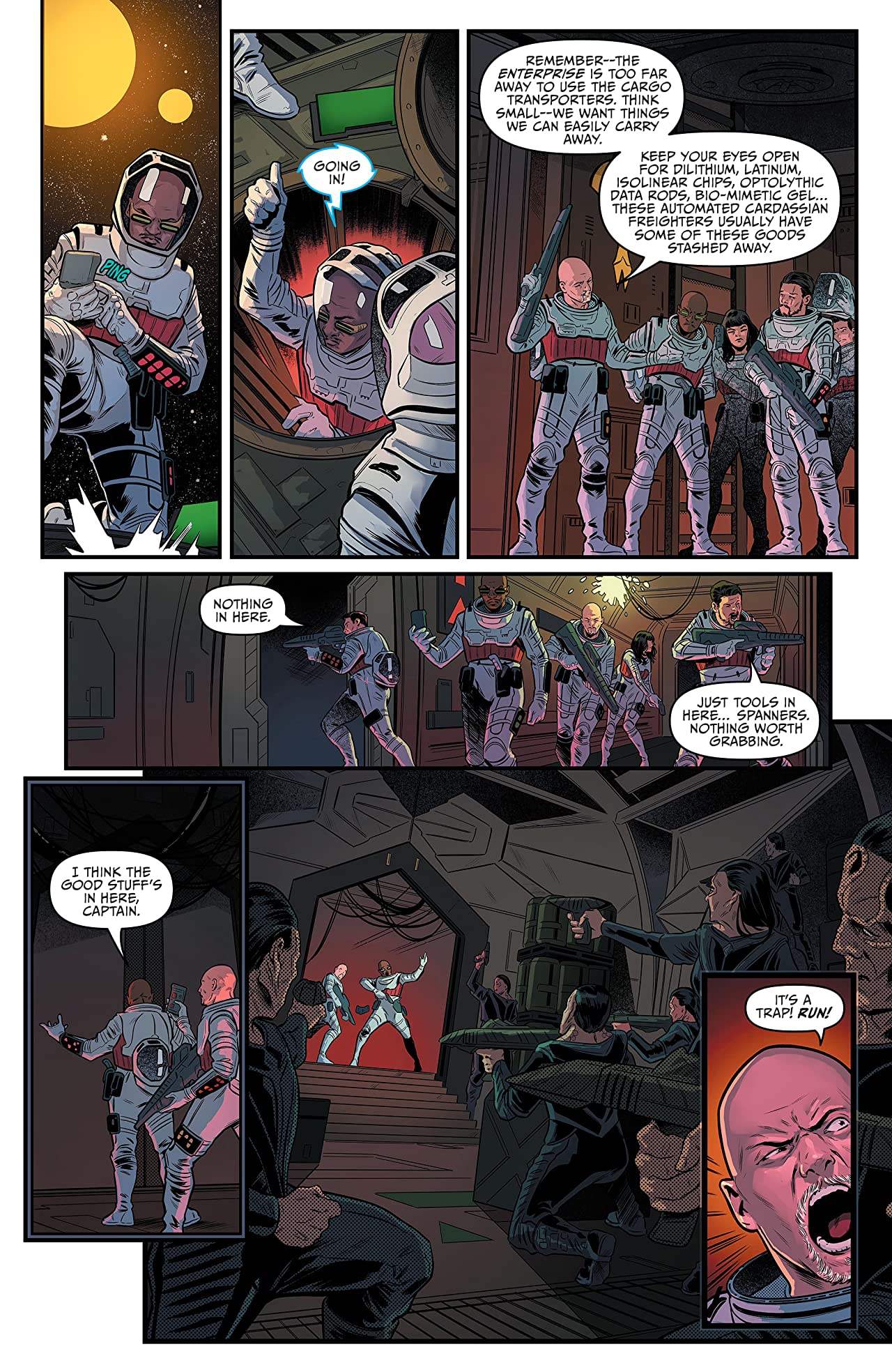 Starting with a thrilling infiltration of a Cardassian cargo vessel, and finishing upon the abduction of Reginald Barclay’s evil doppelganger back to the Mirror Universe, it’s evident straight from this twenty-page periodical’s get-go that its creators were absolutely thrilled to return to the science fiction franchise’s highly popular parallel dimension. Indeed, there’s such a sense of forthright fun with this comic’s numerous capers, especially once an already frustrated Jean-Luc Picard is recalled “back to Earth to report to the Emperor personally”, that many bibliophiles were probably pre-ordering as many instalments of the planned thirteen-part event as their friendly local book store could muster.
