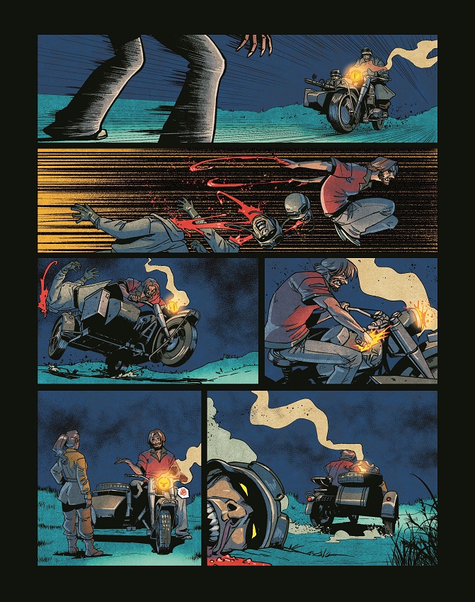 With a $6.99 cover price and featuring lettering by Carlos Mangual, DARK RED: WHERE ROADS LEAD hits shelves and digital platforms on the 12th of January 2022, and you can feast your eyes on some preview artwork – and the incentive variant cover from Andy Clarke and Jose Villarrubia – below.