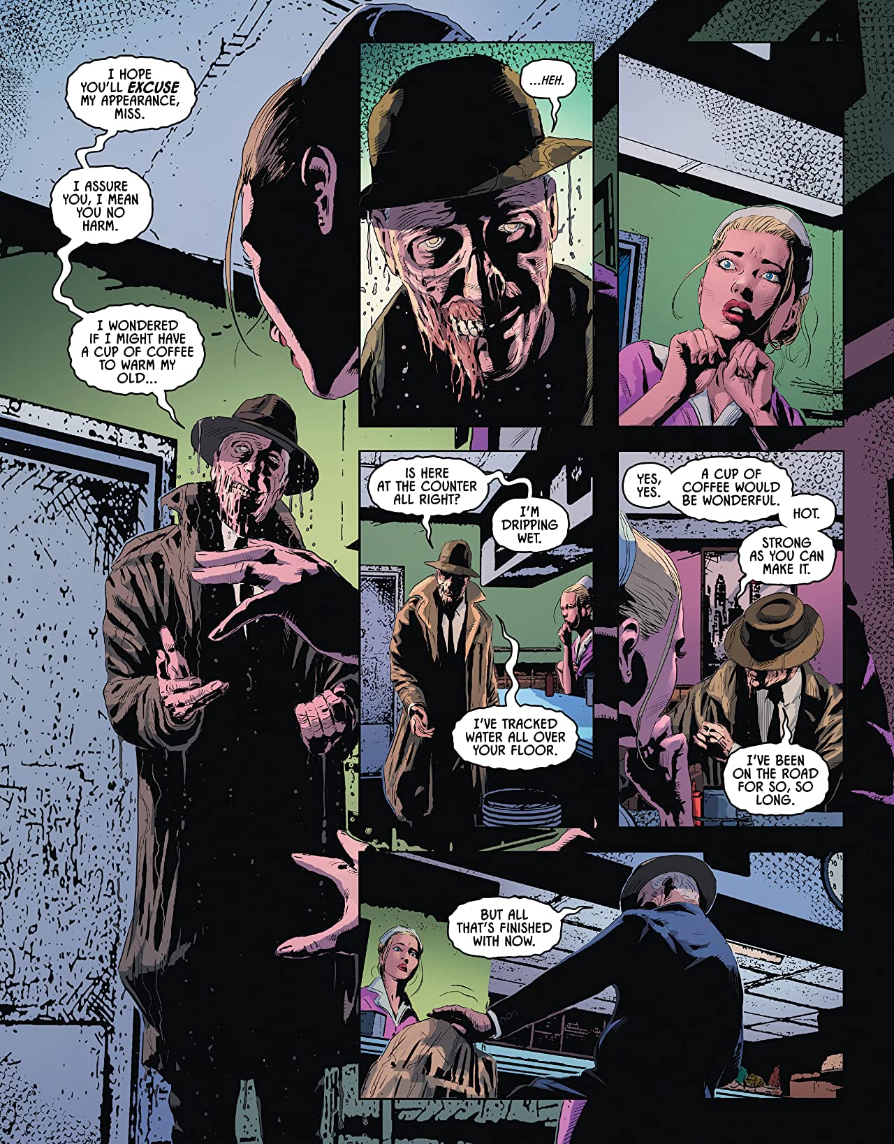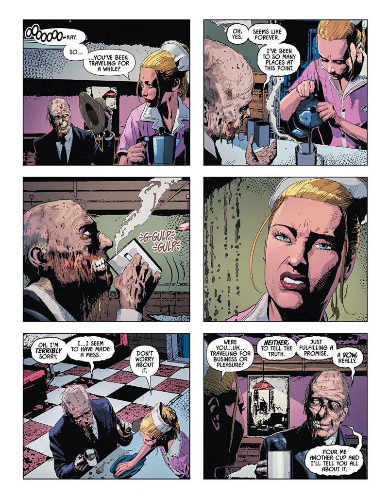 The first entry in this anthology is Ashes to Ashes, a bittersweet story of love and loss that is horrifying, heartbreaking, and to an extent uplifting (but mostly horrifying) featuring a widower who literally gives his all to honour his wife’s last dying wish. It’s no secret that I find Cullen Bunn a bit hit and miss, but when it’s a hit, boy is it a hit! This is a wonderful example of Bunn writing horror with heart and soul to it, and this is the Cullen Bunn that I love to read. With art by Cliff Richards and DC Alonso, and lettering from Dave Sharpe, this is a story that is the epitome of the old EC horror/chillers.