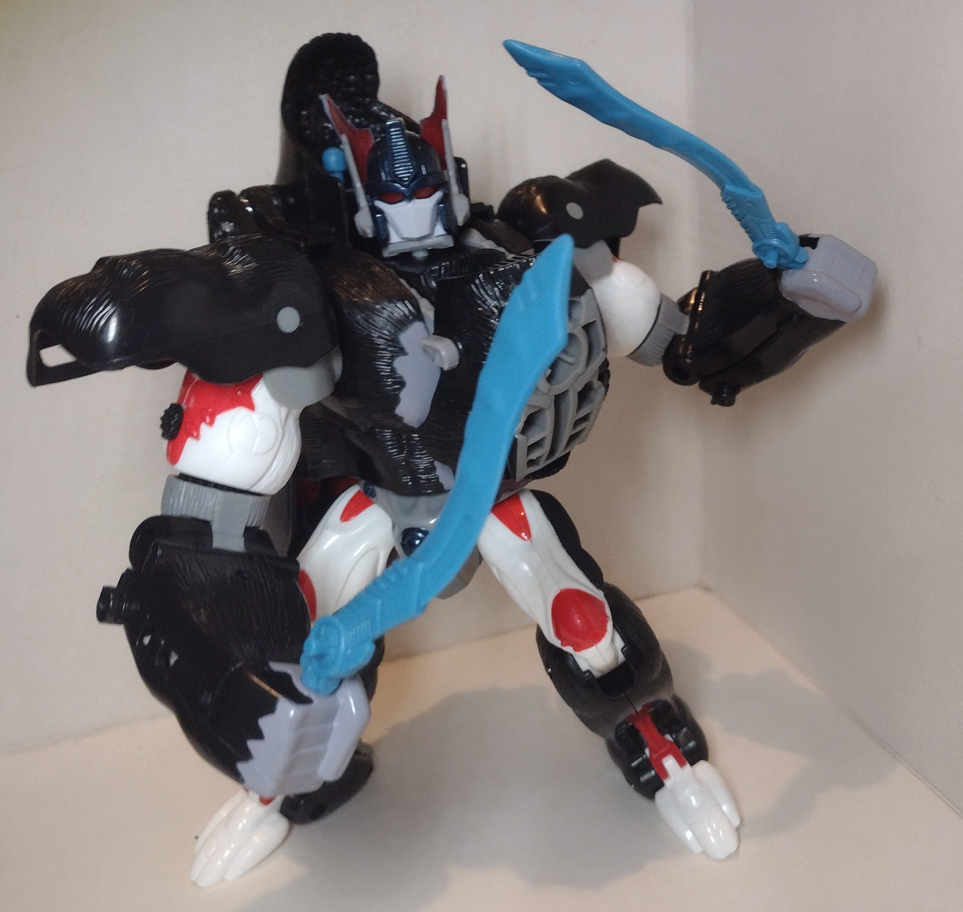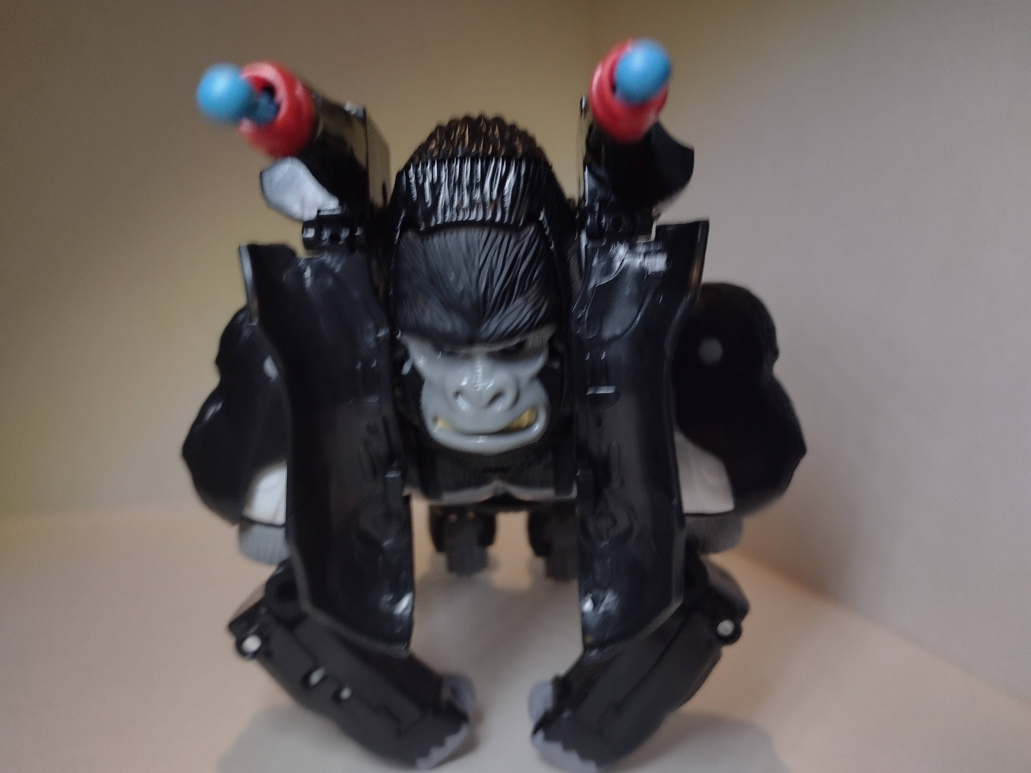 The transformation is really simple – it is just turning a man into a gorilla – and, once you’re finished, you end up with a pretty decent Beast Mode. A lot more grey comes out in this mode and I feel that this makes for a really convincing non-transforming gorilla toy. All the articulation is retained from robot mode, except from the head motion. Its a shame they weren’t able to incorporate some movement into his head. The poseability does allow for the cliché gorilla poses.